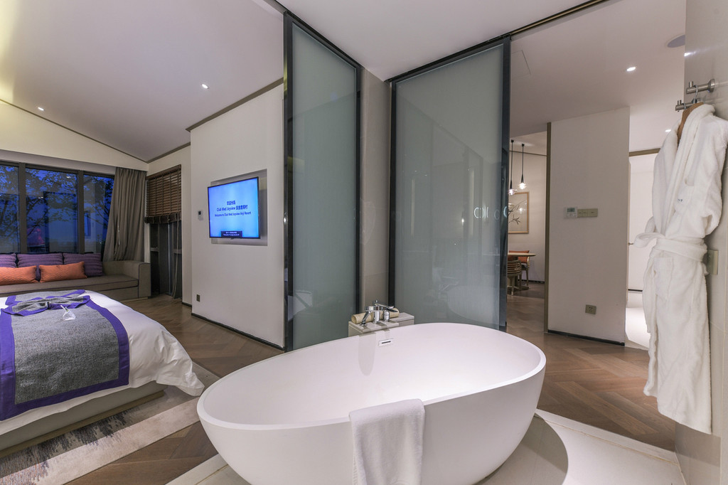 这是安吉县境内的一家奢华型度假酒店,是以度假村的模式建设的。空气清新的度假村环境,让安吉成为江浙沪地区不可多得的宜居之城。因为宜居,所以才成功吸引了世界诸多顶级酒店品牌的入驻。