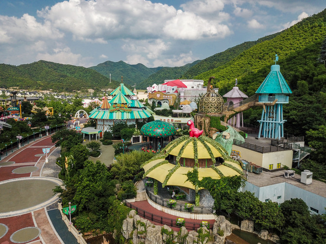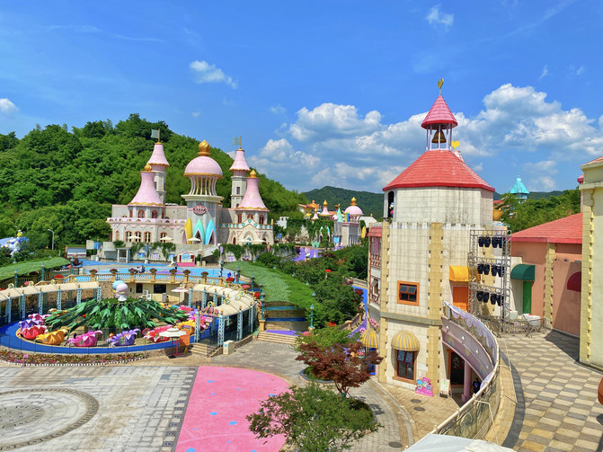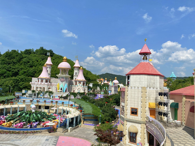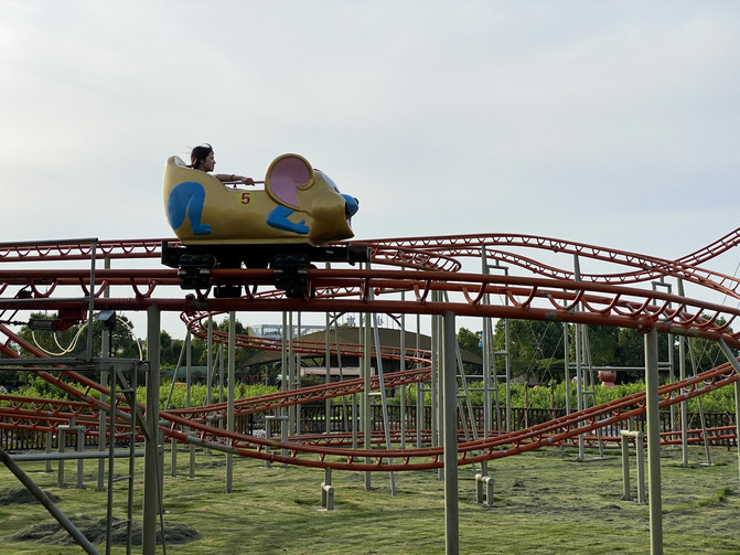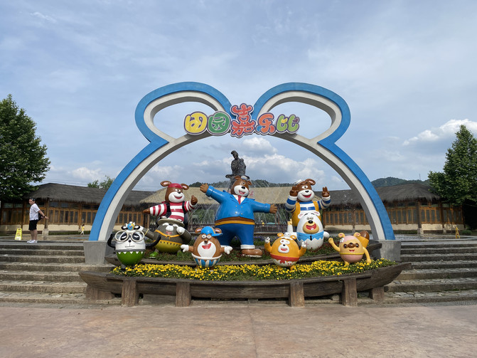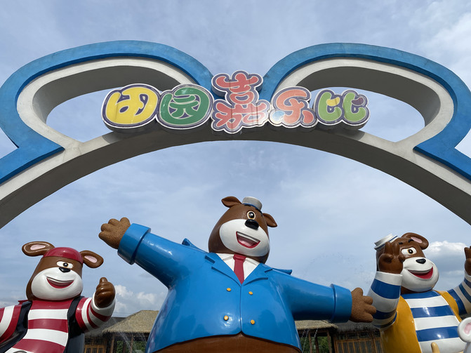 田园嘉乐比是第二次来了,之前叫熊出没乐园,不知道为什么改名了。这座乐园则是以自然风光和田园风采为主题。进入园中,一眼望去,四处都是生机盎然的花朵。在整齐干净的草坪上,游客们正在闲散的游玩者。这里的氛围多了宁静和轻松,我们也顿时放松了下来。