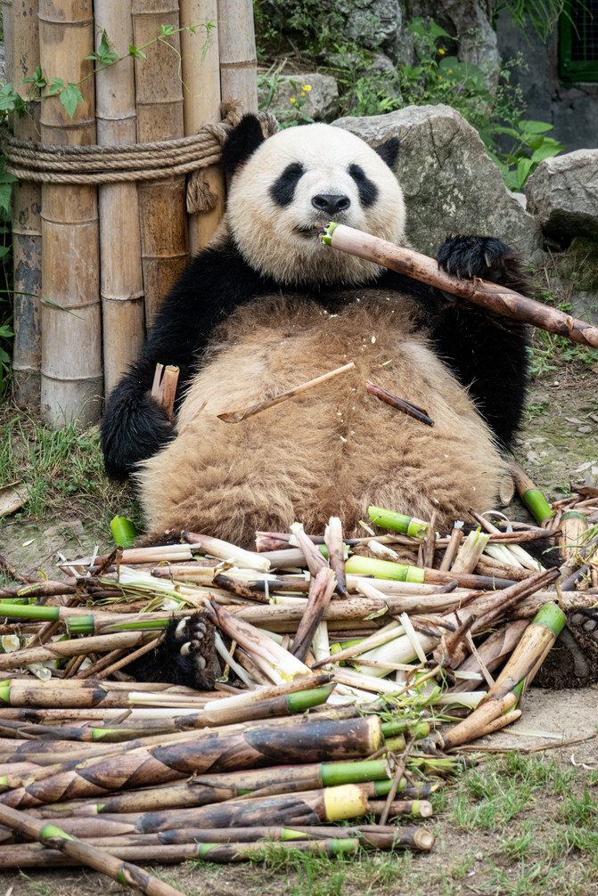 当然,我们不能忘了大小熊猫馆。这馆内,游客可以看到几只熊猫,他们憨态可掬,一副可人模样。孩子们兴奋不已,大家围绕着熊猫不断观赏。熊猫可爱闹腾,他们自顾自地吃着竹子,水果。对于长三角的游客,大熊猫可是不常看到的。