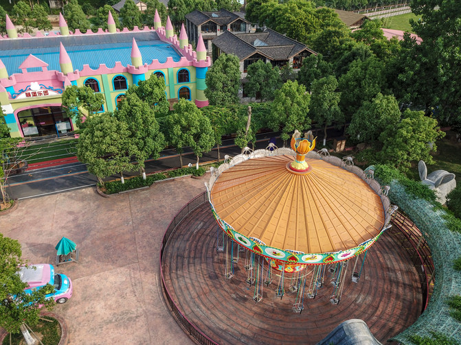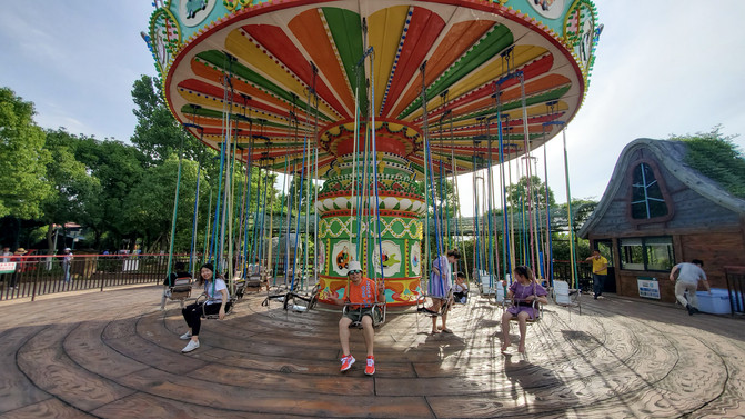 进入园内,一定要去体验一下缤纷摩天轮。摩天轮高达42米,来到最高处之时,便能俯瞰园内大好风景。摩天轮外部装饰一新,里边则是布置温馨。到了节假日的晚上,摩天轮旁边更是烟火璀璨。在点点星光的映衬之下,一切都如梦如幻。这是大家不能错过的。