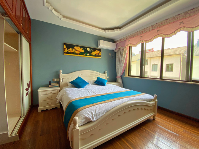 润心民宿是一幢1-3层的洋房,一楼是花园和厨房,花园里面老板种了不少多肉植物,还有一个凉亭可以让客人在这里休息聊天发呆,一层半是餐厅和前台,二层三层是客房。房间很温馨,这次我订的是亲子套房,一大一小两张床。房间很干净,也很明亮。
