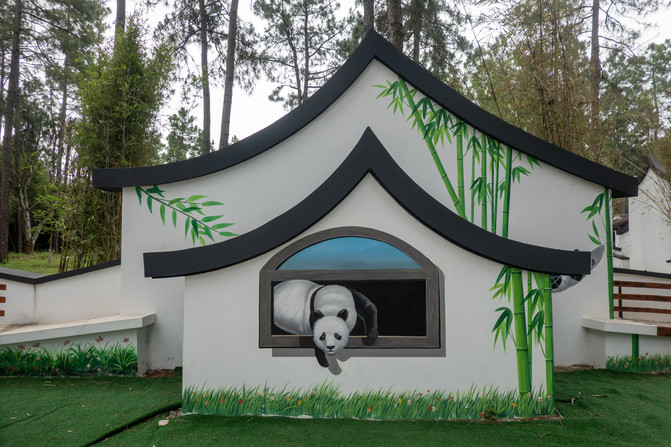 在园区之中,特色装饰的小屋尤为好看。小屋颜色缤纷,样貌奇特。在屋子一角,还有各类卡通的装扮。见到这样的屋子,孩子们最为兴奋。他们三三两两地嬉闹着,园区内都是一片欢声笑语。