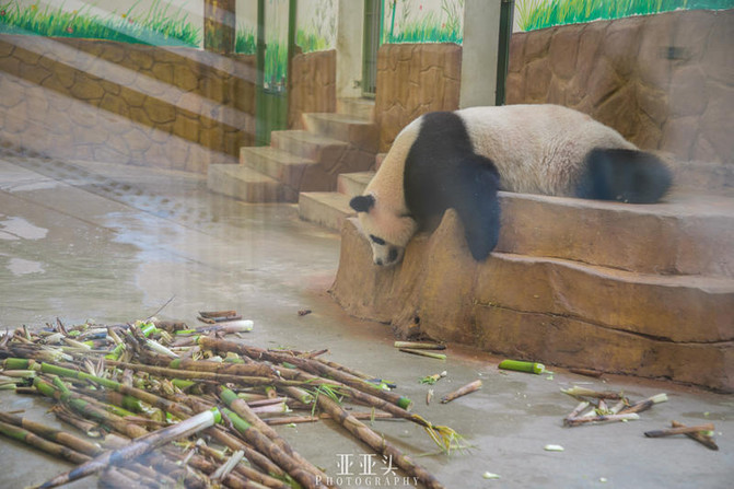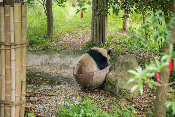 竹博园里的熊猫馆有分大熊猫馆和小熊猫馆,能不能看到熊猫全凭运气,有时候她们会躲起来不跟人类玩耍,有时候会懒懒的晒太阳打盹儿,还有来回走来走去好像有很多心事的样子,在竹博园里看大熊猫感觉比在一般的动物园看会更真实,因为有竹子的地方就是她们栖息的地方,竹子就是她们的食物,她们真实的生存环境。友情提示:大家如果看到国宝们正在休息,也希望大家尽量小声讲话,不要影响到他们的正常作息。来得早不如来得巧,今天看到了3只大熊猫,一只睡着了,还有两只在外面吃竹笋,吃的可香了,吃完了还把屁股对着我们拉粑粑,真的好好笑,然后拉完它们竟然会自己跑去水槽里把自己的屁股浸在水里洗一洗,真的太好玩了。看完了大熊猫之后,中国竹子博览馆也建议可以去看看,一进门就看到了耸立在我面前的巨龙竹,还是第一次看到那么粗的竹子。里面有好几个展厅,有讲竹子科普知识的,有讲历史上竹子制品的,还有现代的一些竹子家具,竹子创意品,如果家里有小朋友的可以补充一下课外知识。开放时间:07:30-17:30