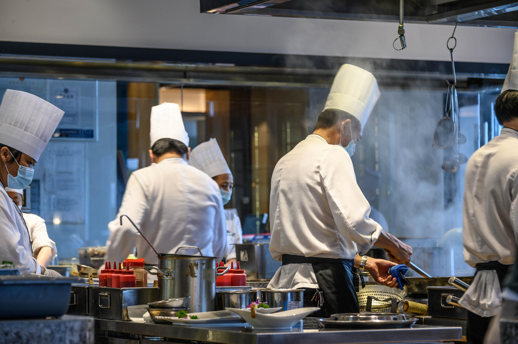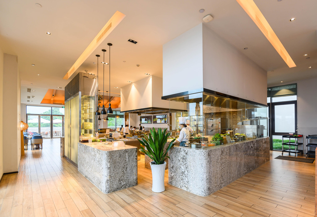 餐厅中间区域是厨师们烹饪区,透明地展示他们烧菜的过程,大家可以吃的更放心。