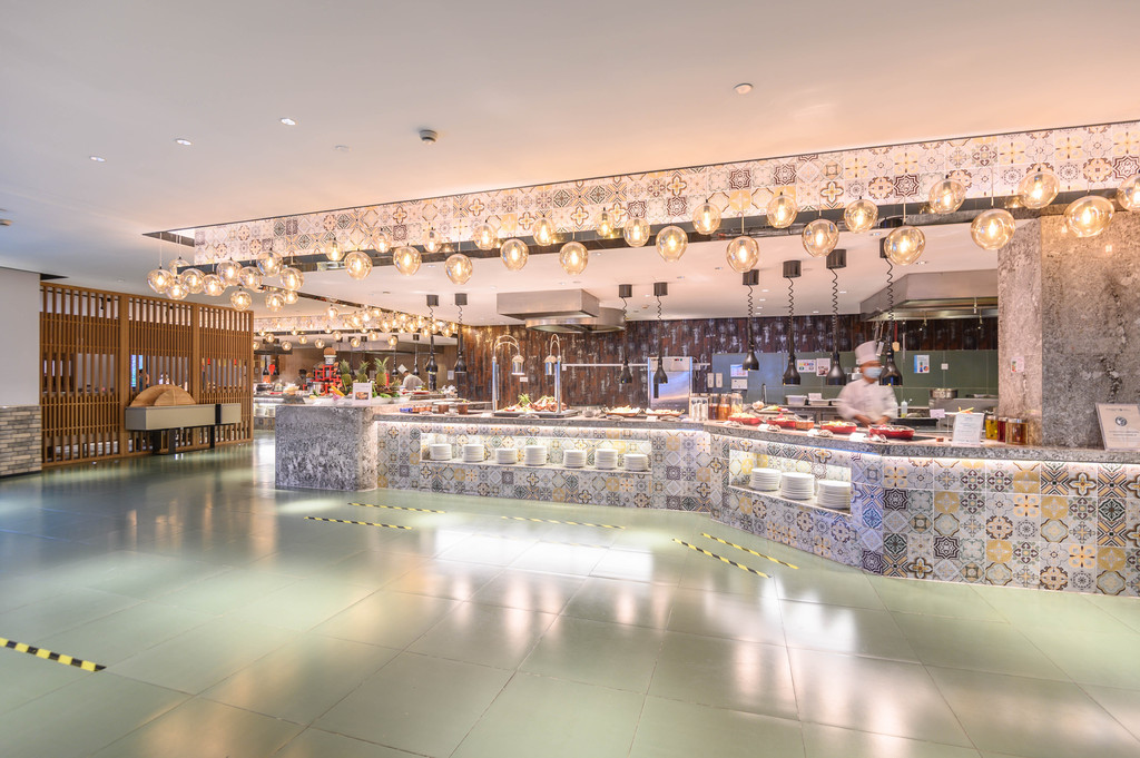 品餐厅是自助餐餐厅,菜品非常丰富,也有海鲜,属于性价比很高的一家。度假村退房时间是上午11点,你寄存行李之后还可以去餐厅吃午餐后再离店,除了没有房间,其他娱乐设施都可以继续玩。
