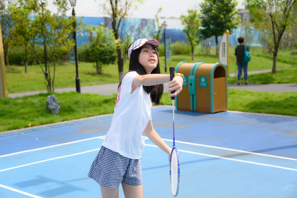 旱鸭子就玩下陆地项目吧,孩子和我玩起了羽毛球,大热天的我们也不怕热,出汗排毒才好呢~