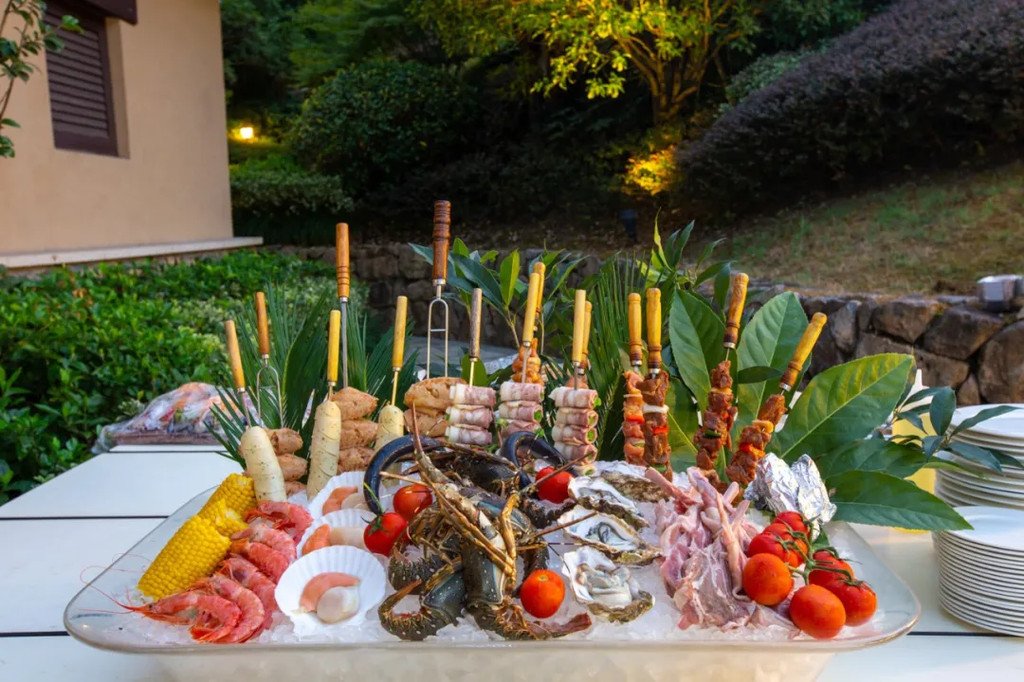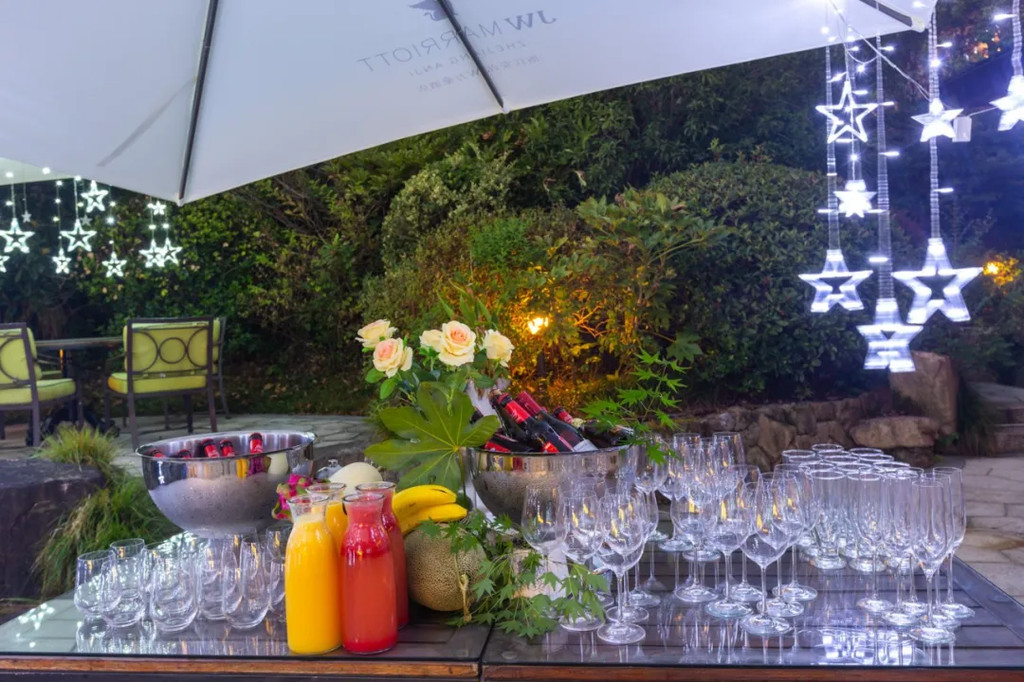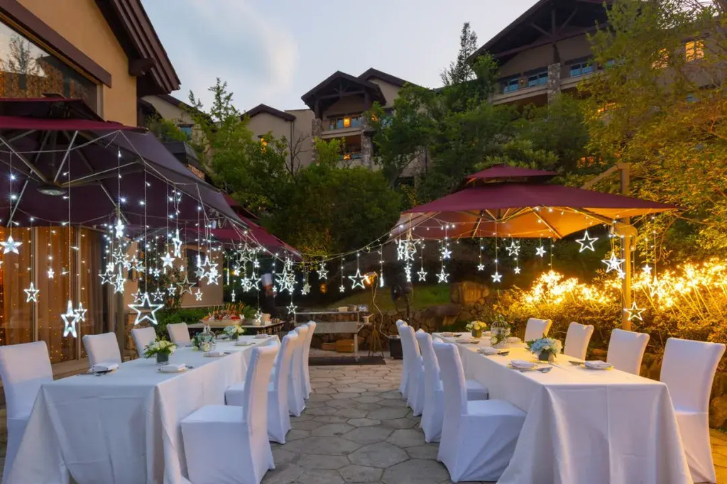 酒廊外的花园休息区还设有露天烧烤,在秋日的黄昏里,与亲朋好友相约在花园中,品尝美酒烧烤,畅聊生活乐趣,共享度假好时光。