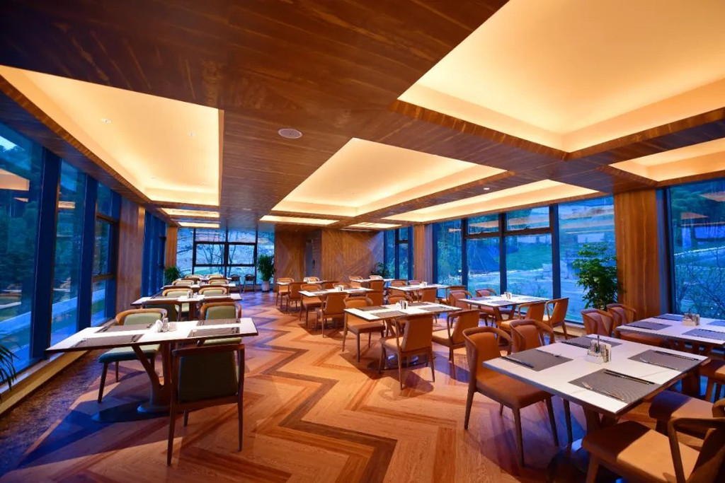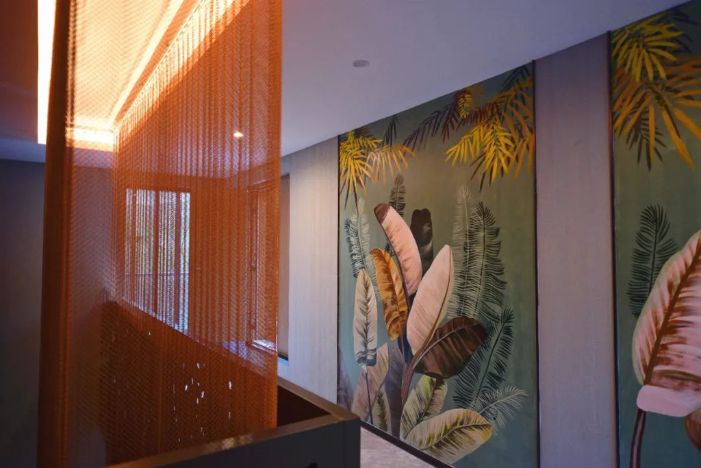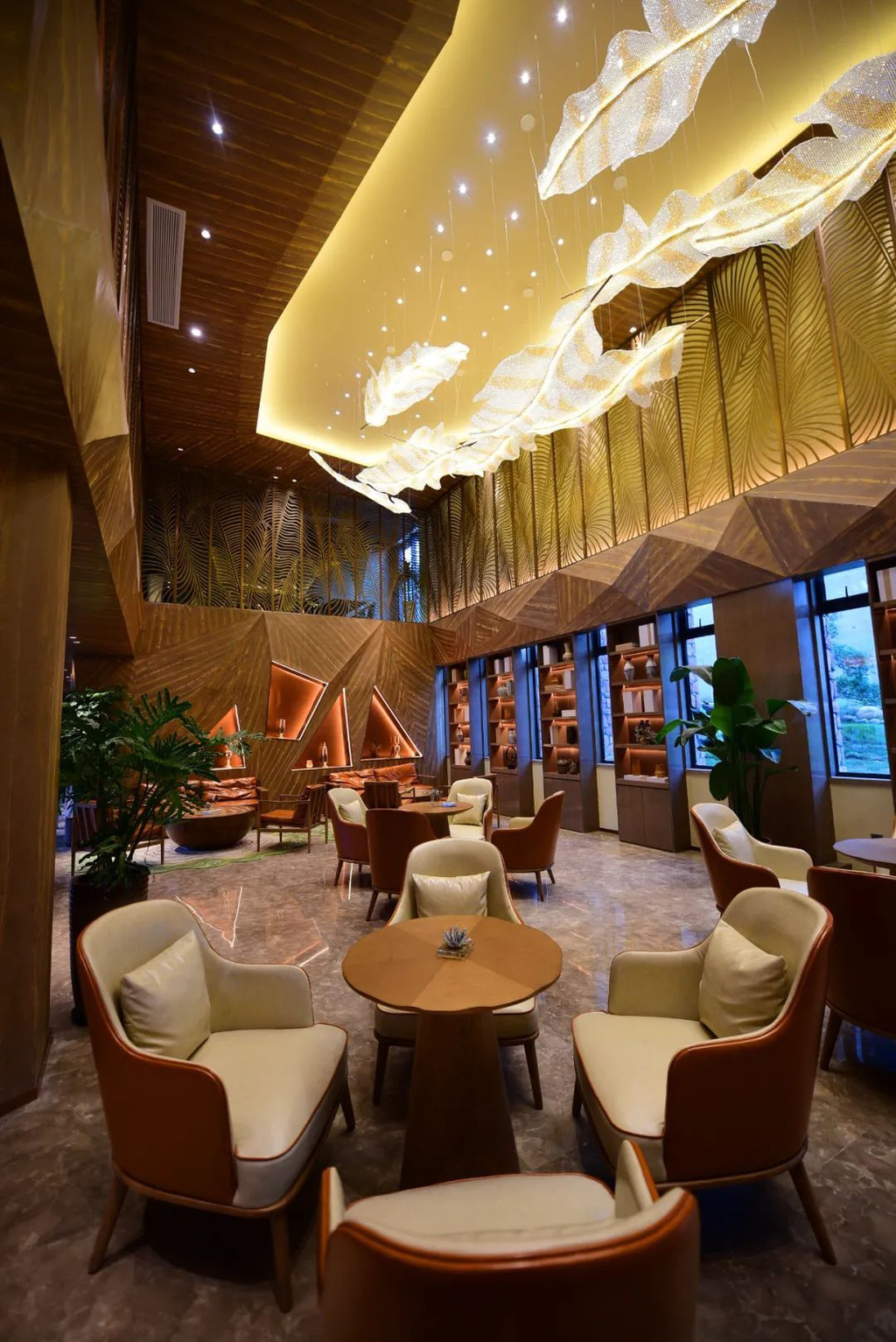 步入酒店直面大堂,就会被上方的树叶形状的吊灯所吸引,一种高级的野奢气息扑面而来。
