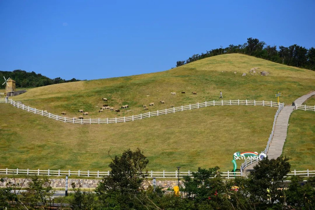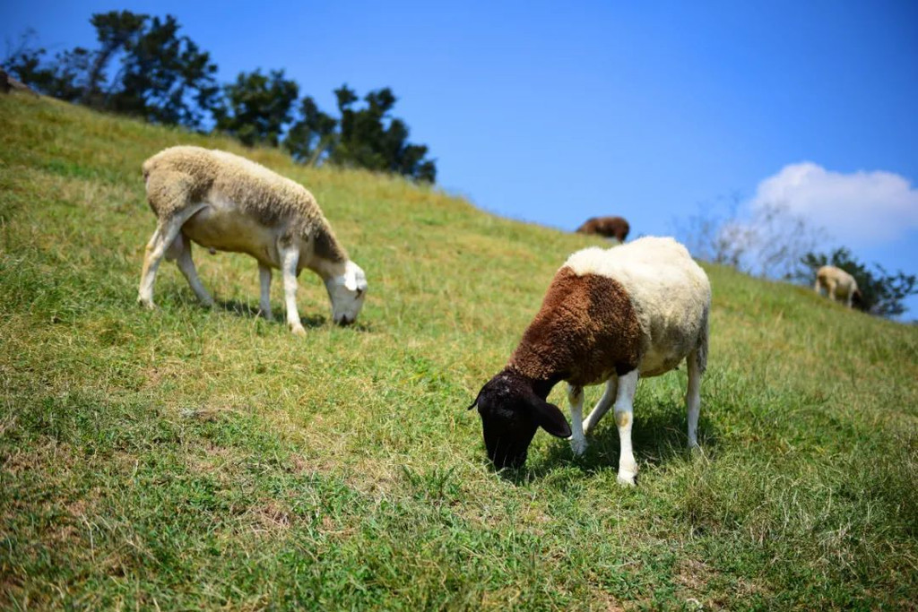 射箭介绍看到彩虹滑草旁边有一群羊,好像跟农村里养的不太一样,那最后一站就去看羊喂羊拍羊吧,一群羊只顾吃草,毫不顾忌一堆人围着。可爱是真的可爱。