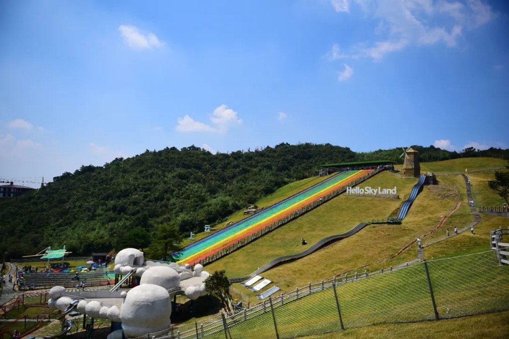 附近就能看到彩虹滑草。很高,看着滑下来很爽。
