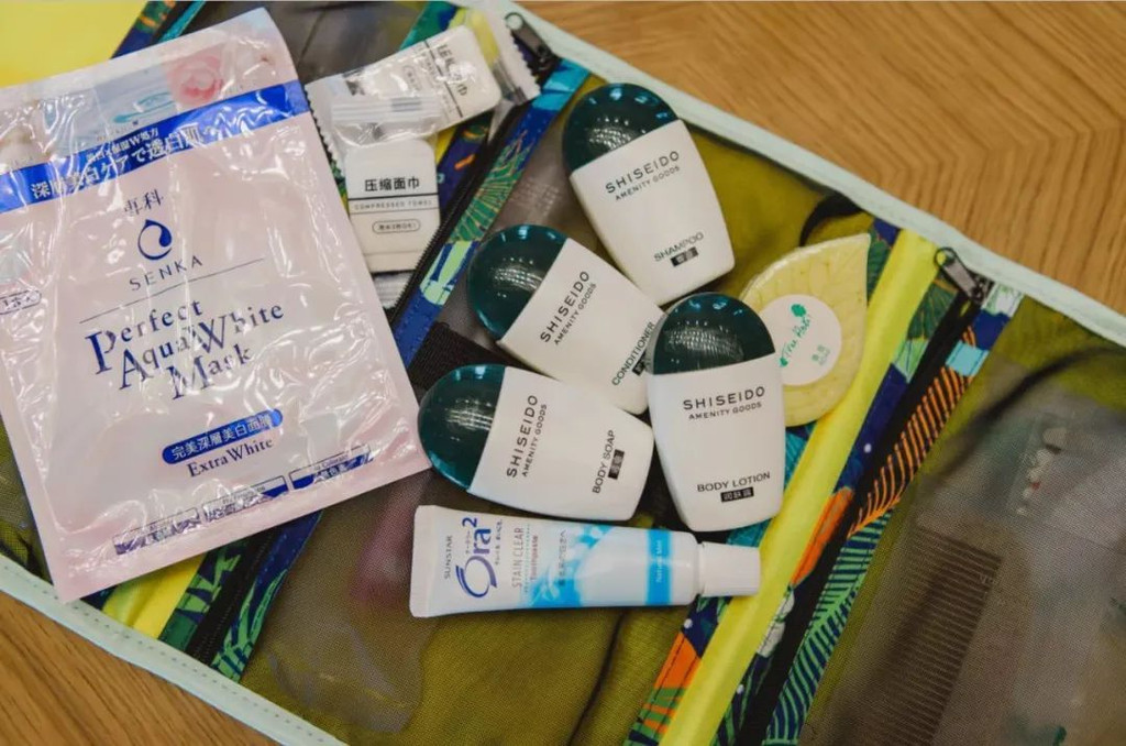 天哪,这是什么神仙颜值!也太好看了吧!洗漱包里有全套资生堂洗漱用品,除了面膜,还有压缩毛巾!!
