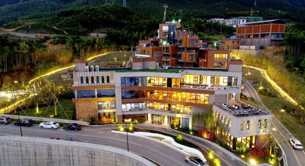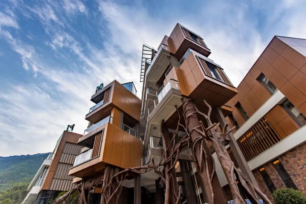 从后门出去,才真正进入酒店客房区域。出大堂的我被10号楼震惊到了,原来“树屋”的真面目在这里!