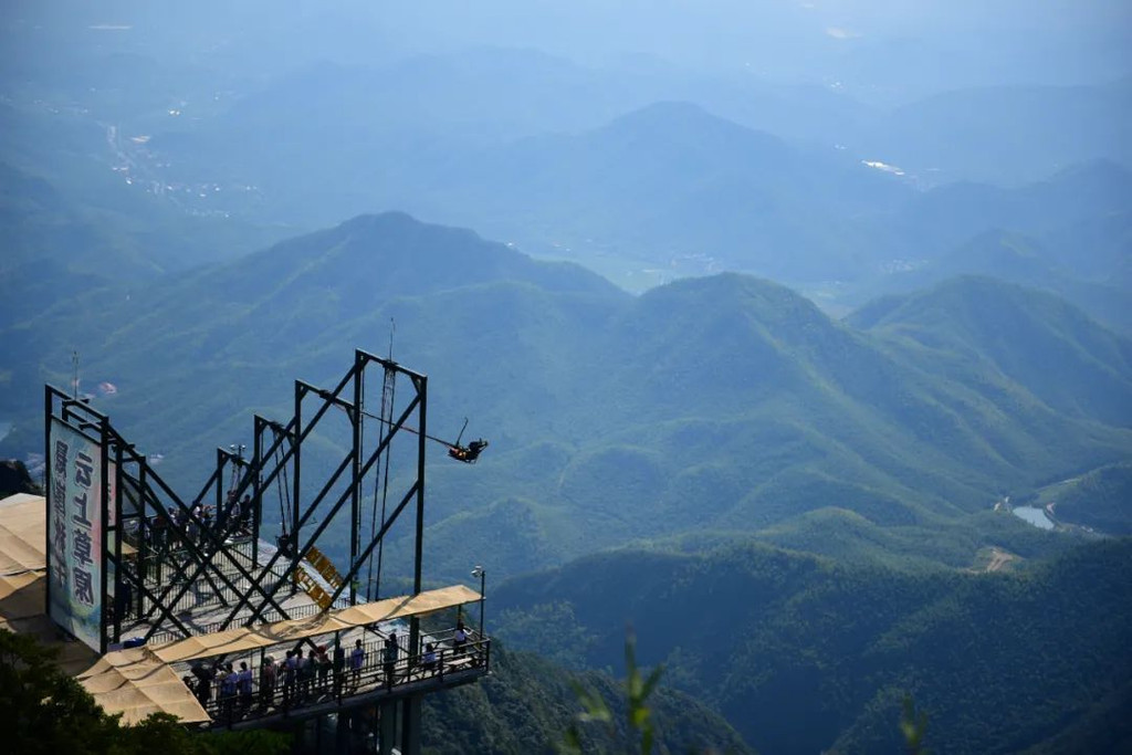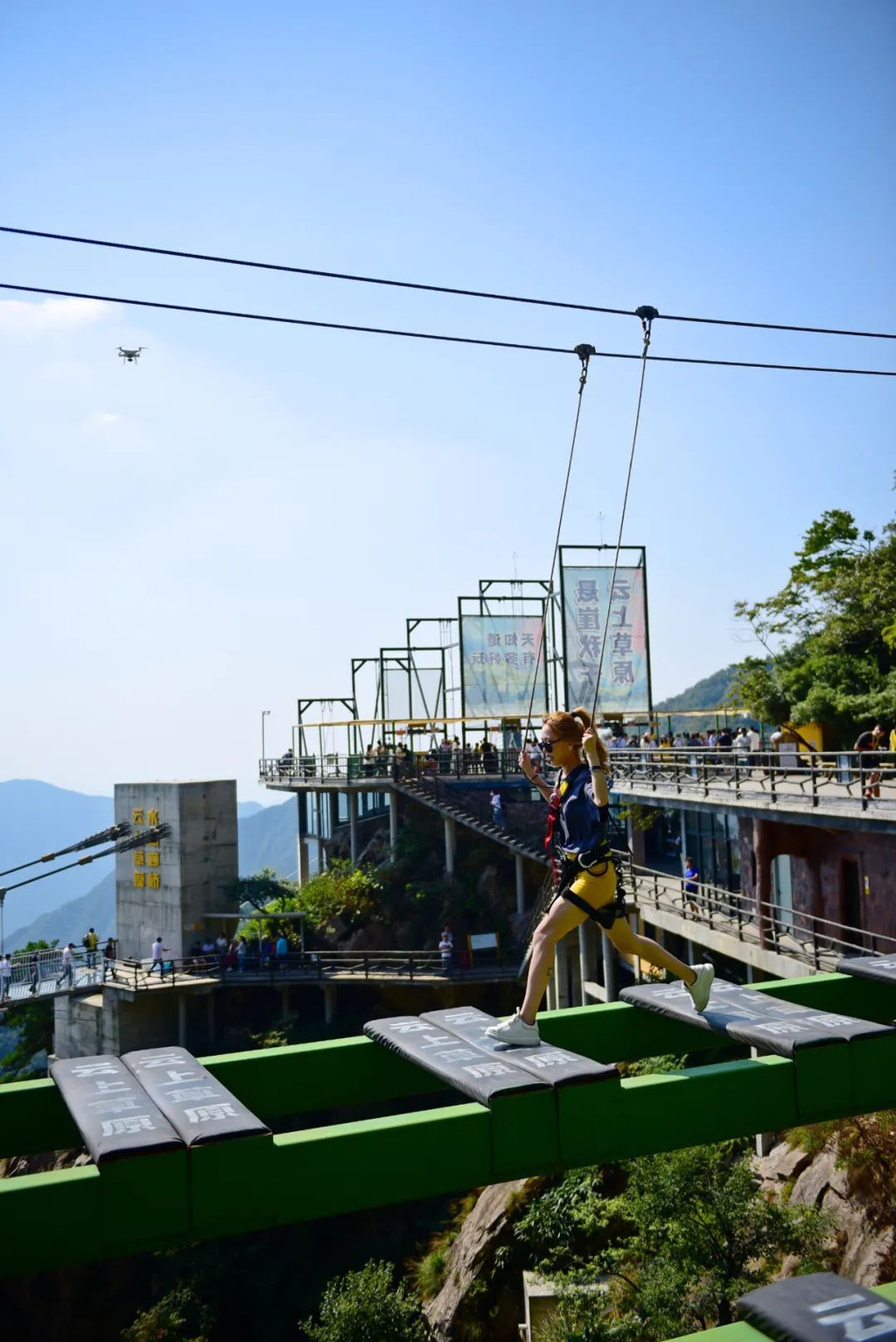 到达山上后人不多,我们先去的栈桥,那边有个老大爷工作人员超级热情,建议我们先去玩悬崖秋千,把要排队的先玩了,告诉我们玩好那些,最终还是要走到栈桥这里的,大爷真棒。