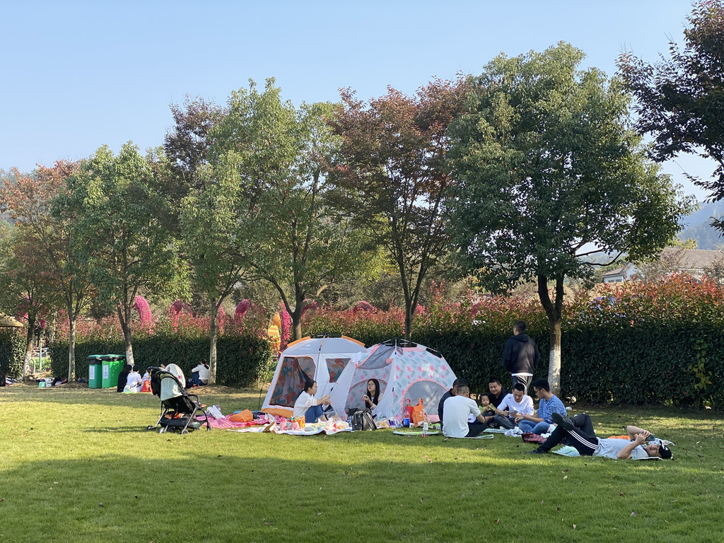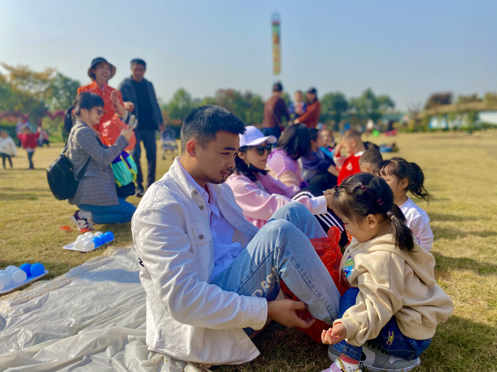 在疯狂农场大草坪上一家人一起进行亲子拓展,推独轮车、挑箩筐、敲拓染,共度亲子美好时光,增进感情~或者也可以带野餐垫坐下来一起吃吃喝喝,体验感超棒!