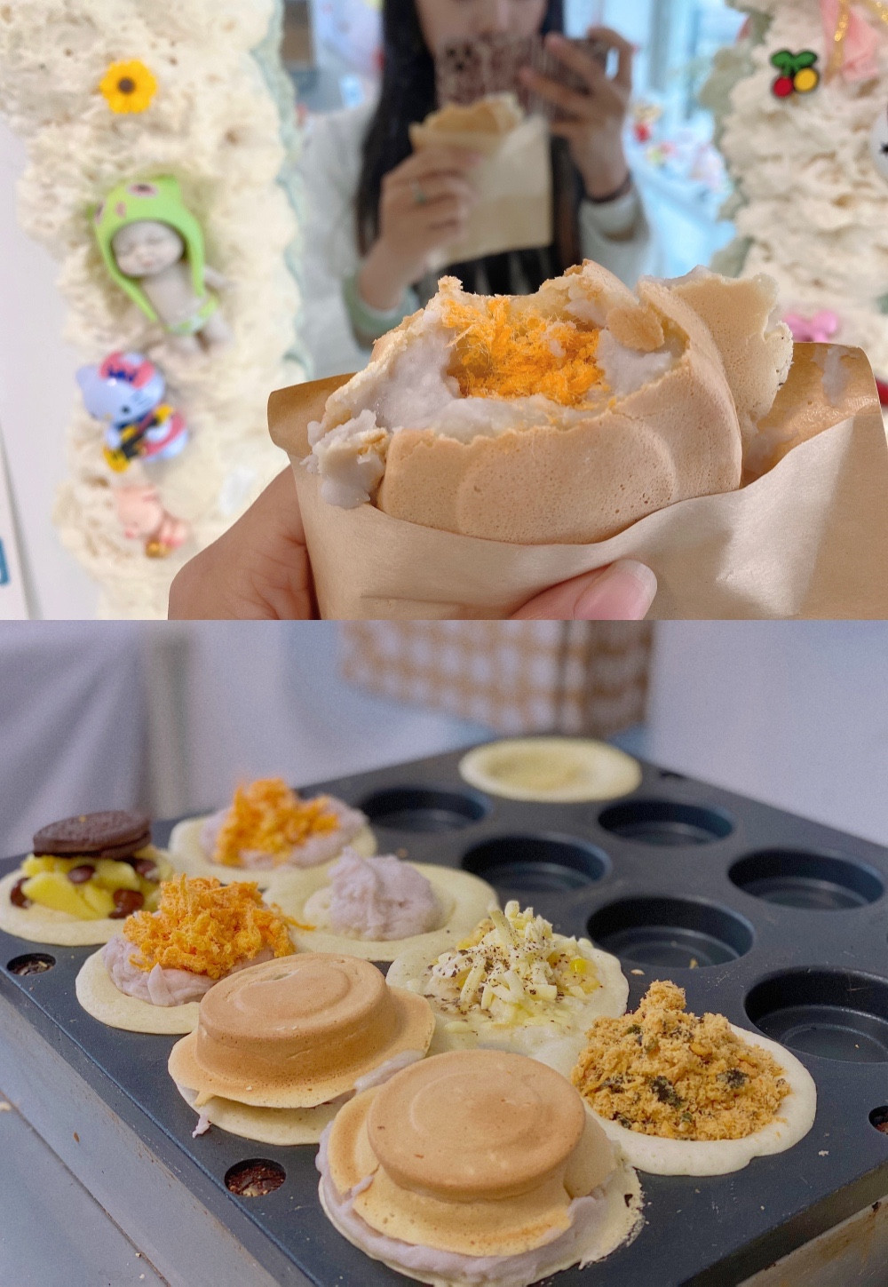 位置在递铺城中心,这种小吃看似平平无奇,其实内里大有乾坤!有7/8个口味。肉松蛋黄、玉米芝士、紫薯、等等!乐乐最喜欢玉米芝士,8元/个!非常软糯! 这种冬天,就适合吃这个咬开满嘴热气的!非常温暖