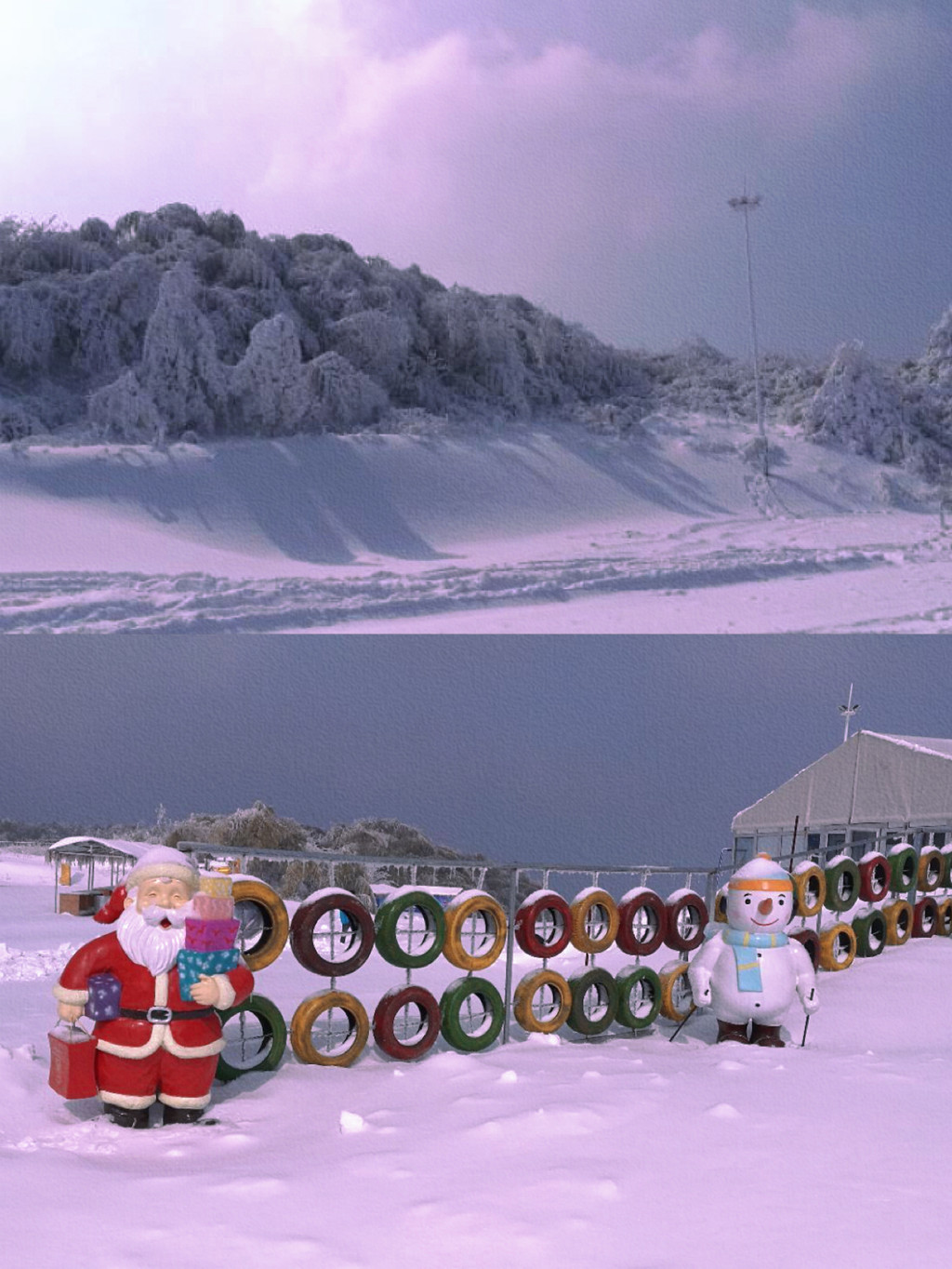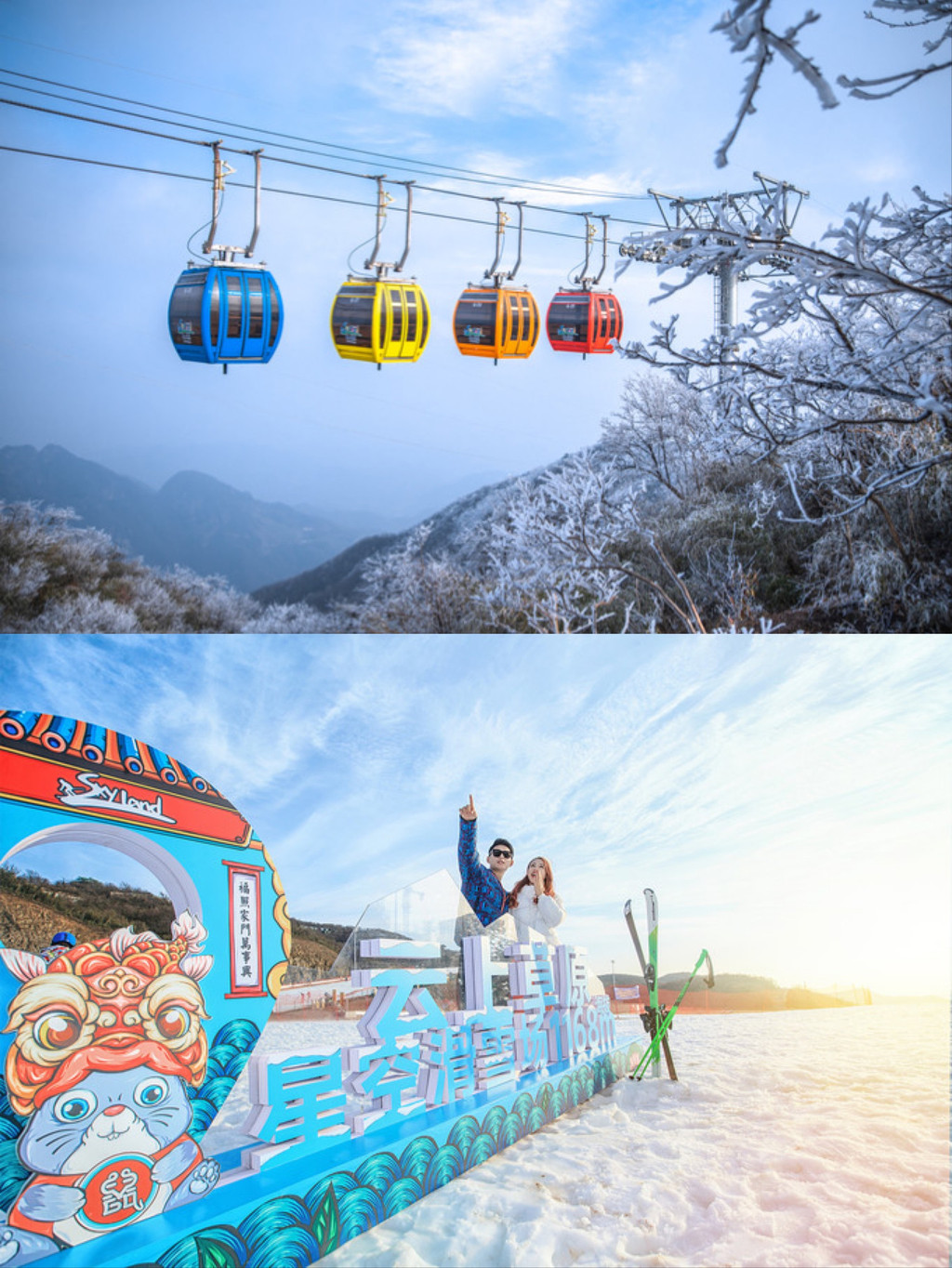 到达滑雪场需乘坐索道,在索道上可以看到在南方难能可见的雾凇哟,非常浪漫呢~
