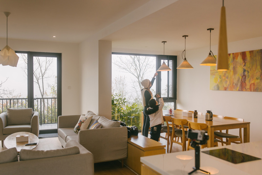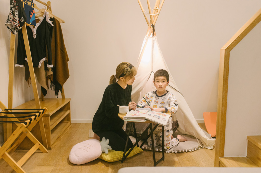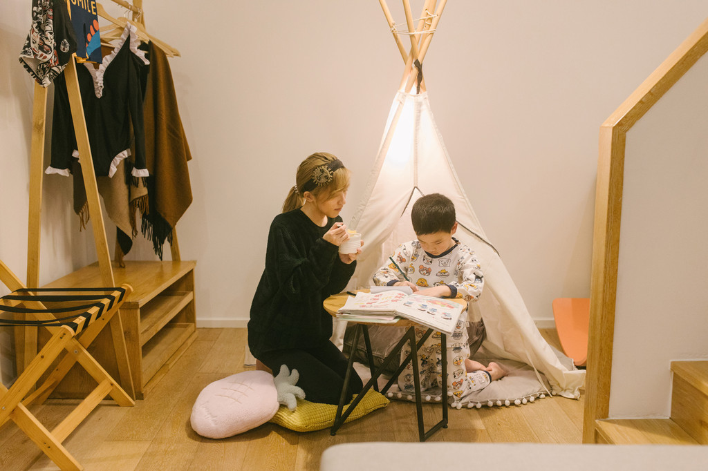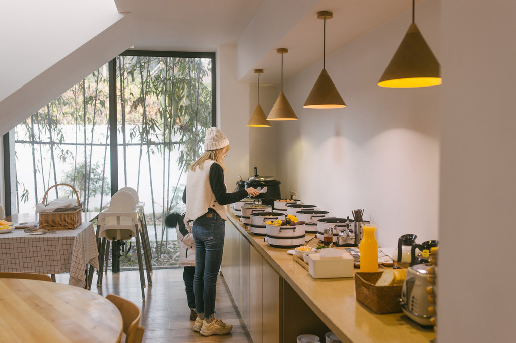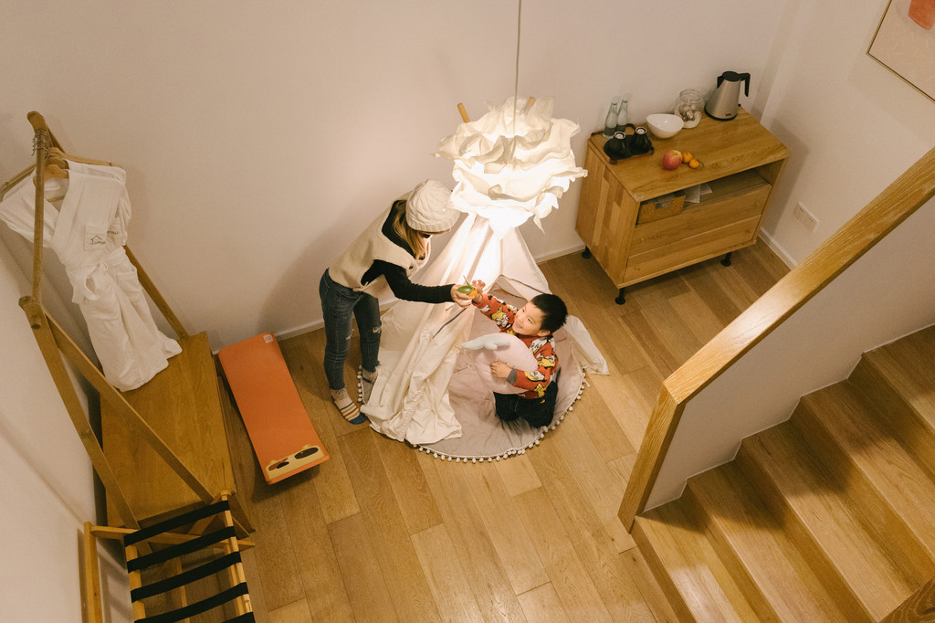 抵达目的地已经是傍晚,民宿的管家小姐姐出来帮我们把行李拎进去,办理好入住手续。今晚我们住的是Loft亲子套房。管家提前帮我们开好了暖气,狍哥一进来就冲到楼上蹦跶了。让我惊喜的是,居然有地暖,这简直是怕冷星人的福音啊!我也光着脚在地上来回磨蹭了一番,真暖和,哈哈哈~