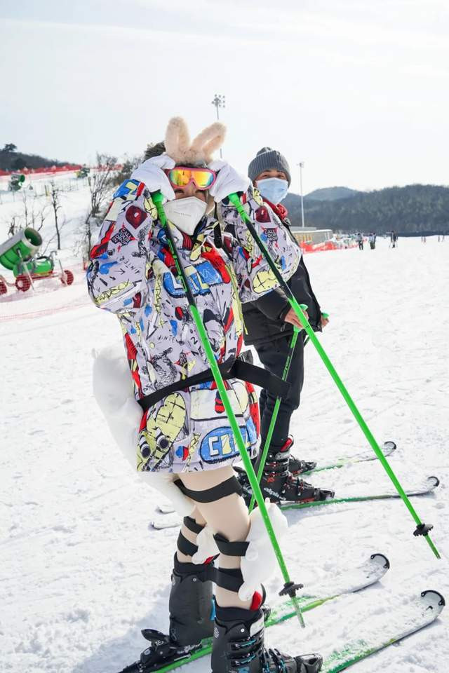 这个妹纸也很大方,看到我在拍她,即使戴着口罩,还是拿起滑雪镜给我比了个手势。美美哒!