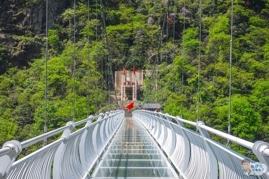 浙北大峡谷前半段主要以怪石、石洞、小湖瀑布穿插其中。满足了“好看”,当然也要好玩。勇于尝试直面万丈深渊,才是真正的勇士。玻璃桥早已成为景区的“标配”,在2018年10月1日落成的浙北大峡谷“迎宾桥”是 安吉 县首条7D体验的玻璃天桥,玻璃栈桥连接两座山峰,总跨度长约170米,落差约107米。