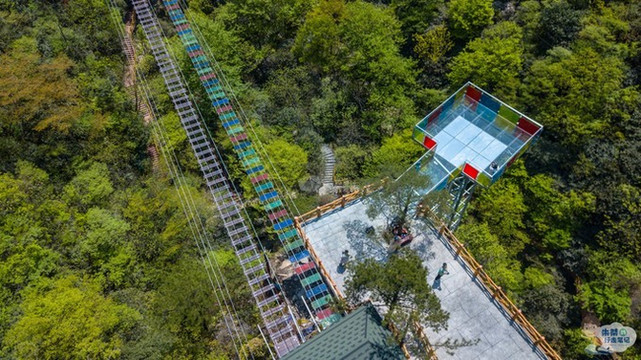 除了玻璃吊桥、空中漂流、还有悬崖秋千、天空之镜、360度自行车、旋转秋千、时光滑道