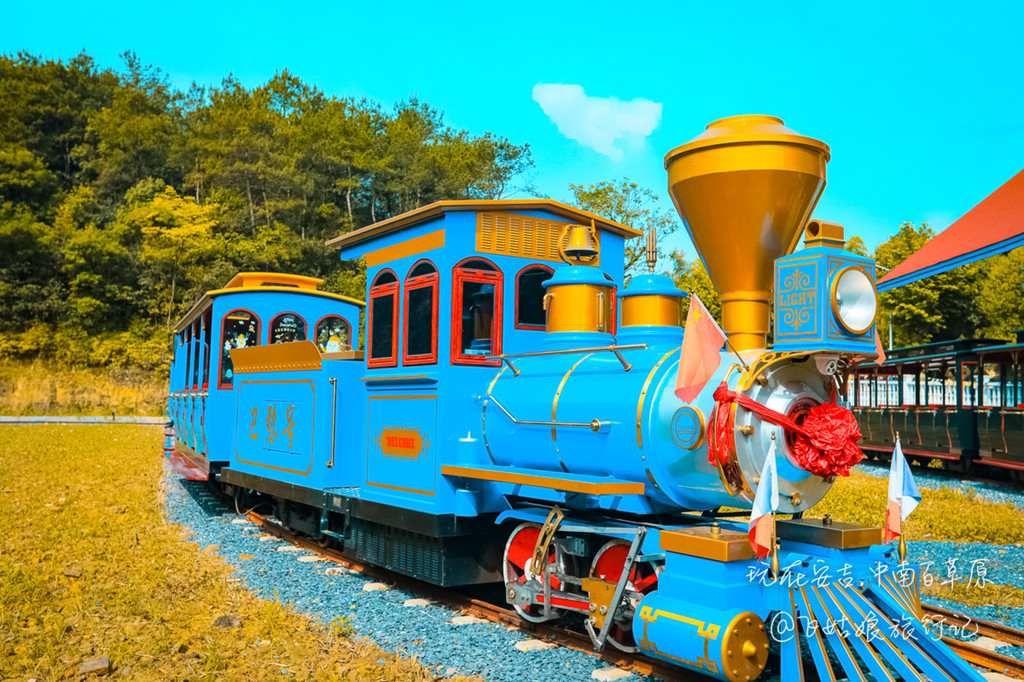 中南欧洲 牧场景区观光铁路环线总长3.86千米,其观光火车是迄今为止 浙江 省首列双轨环线小火车,小火车为半封闭式车厢,由4节车厢和火车头组成,可承载128位乘客,全程运行时间38分钟。