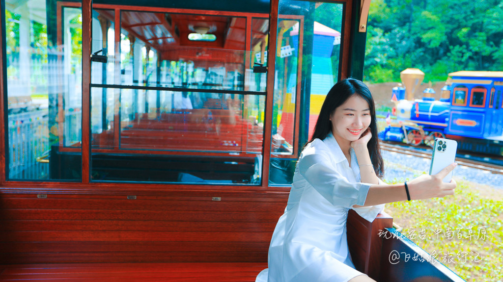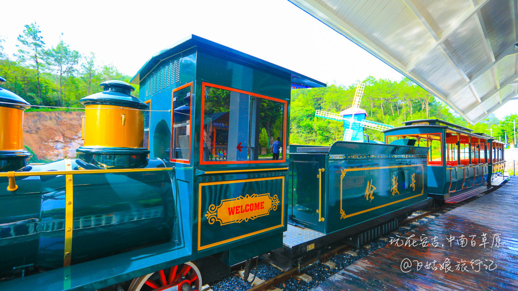 上午我们在【 中南欧洲 牧场】乘坐“ 伦敦 号”欧式小火车,观光铁路环线总长3.86千米,全程运行时间大概35分钟。我们穿梭于 欧洲 牧场,途径 法国 、 英国 、 荷兰 、 瑞士 等十多个站点,每站都融入了当地国家的特色元素。半封闭的车厢,方便观景拍照,中途站点停靠的时候可以下车喂动物。饱览绿水青山的同时还与动物们亲密互动,萌萌的羊驼和奶牛都是拍照打卡的好素材;(我们乘坐的是绿色的 伦敦 号,另一列蓝色的是 巴黎 号)