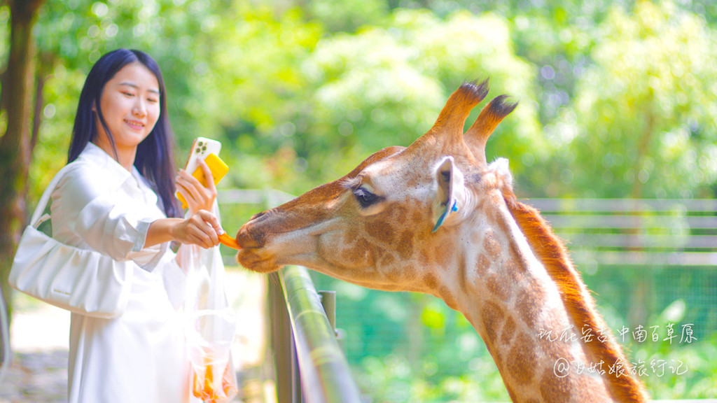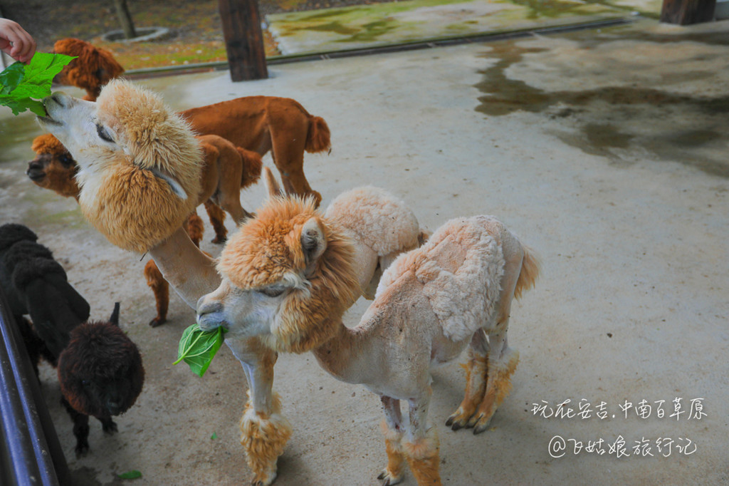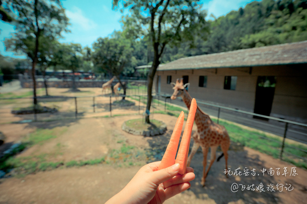中南 百草原的动物世界非常大,动物种类也很多,一路走走停停。手里篮子里还有很多胡萝卜,于是去长颈鹿生活区