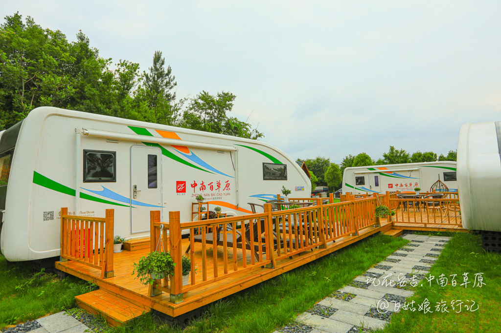 如果觉得一天的游玩时间 太仓 促,可以在 中南 百草原景区里面住上一晚。可以住 中南 百草原度假酒店,或者是房车营地的房车。营地还搭了很文艺范的帐篷,特别适合拍网红打卡照。