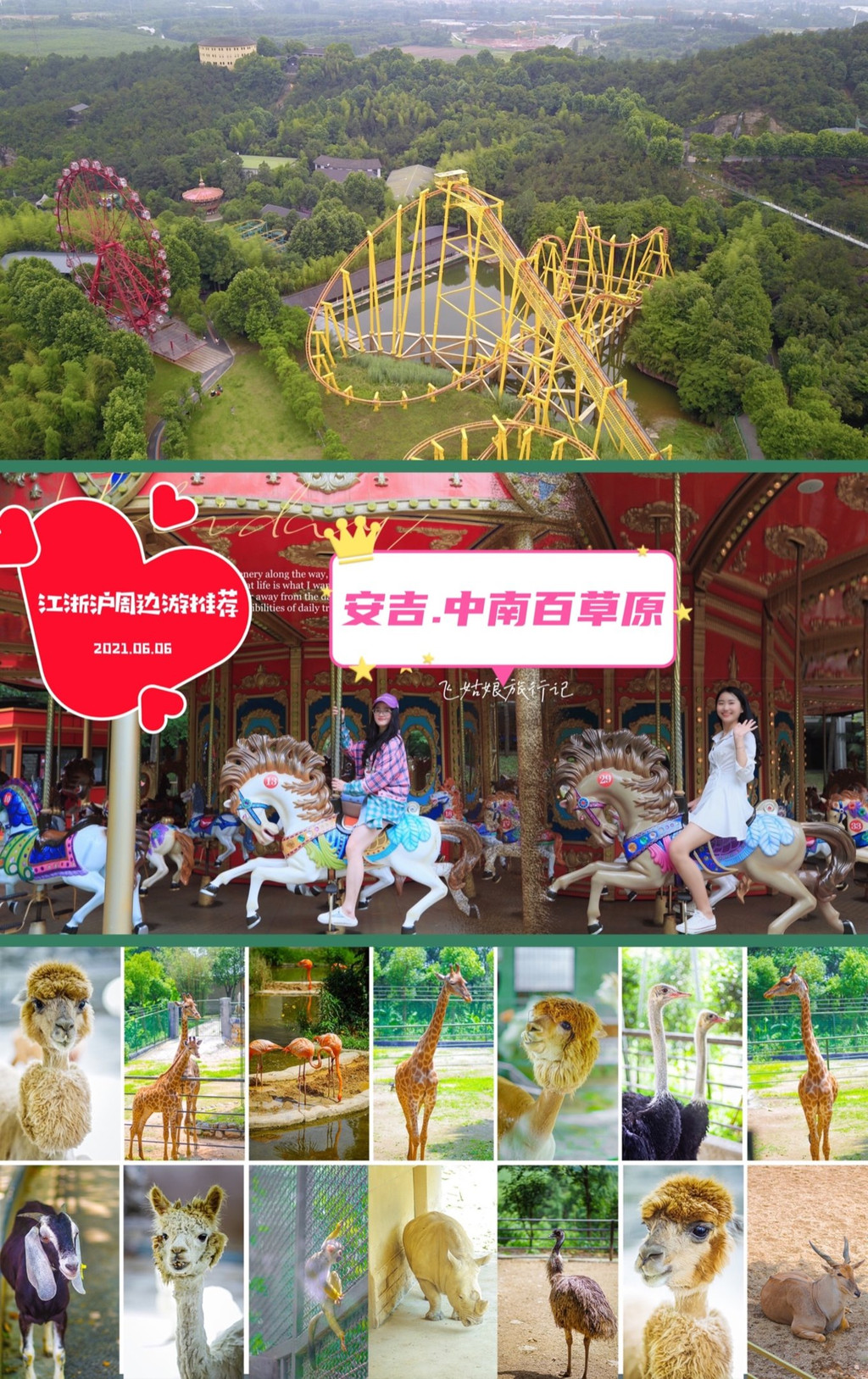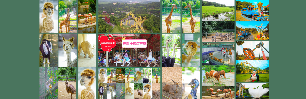 中南 百草原景区位于“ 中国 美丽乡村”—— 浙江 省 湖州 市 安吉 县境内,是国家AAAA级旅游景区,先后获得了国家级青少年户外体育活动营地、全国十大休闲农庄、全国野生动物保护科普教育基地等众多荣誉,已列入国家5A级景区培育名单。占地5600亩,拥有森林、草原、湿地、竹海、野生动物等生态资源以及餐饮、会议、住宿、娱乐、养生、拓展等众多产品,农业、林业、生态、体育、科普等与旅游完美结合,成为以植物世界、动物世界和运动世界为三大主题的综合性旅游景区。是一座融参与性、观赏性、娱乐性、趣味性于一体的 中国 现代主题乐园。