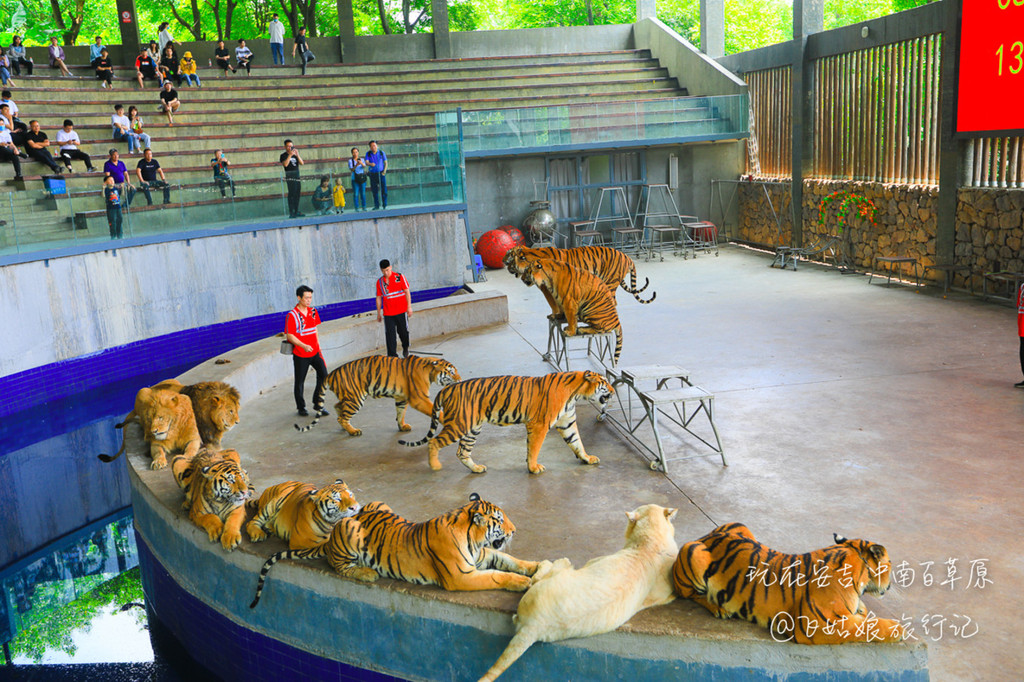 中午在【动物世界】观赏长颈鹿、小矮马、犀牛、棕熊、黑熊、火烈鸟、金丝猴、猩猩、黑天鹅、羊驼、斑马、鸵鸟…在 罗马 竞技场看一场精彩的狮虎特技表演;