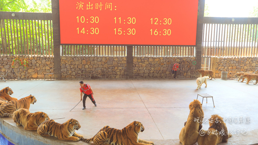 逛完大草坪,可以坐个景交车去动物世界, 罗马 竞技场的狮虎表演很值得一看,演出时间如下,大概间隔一小时。