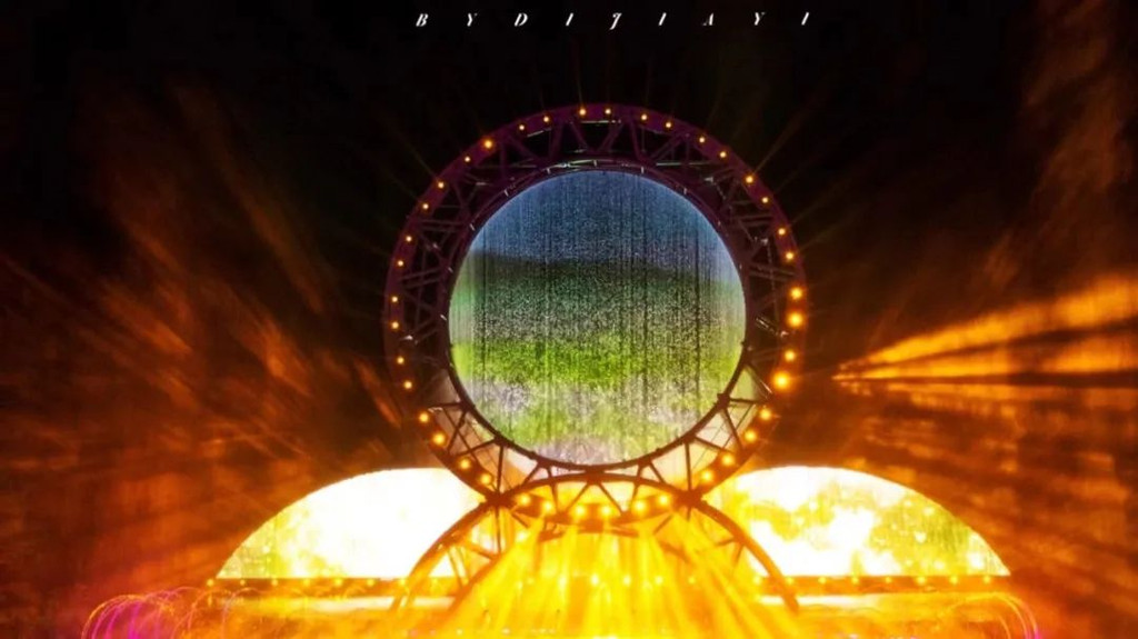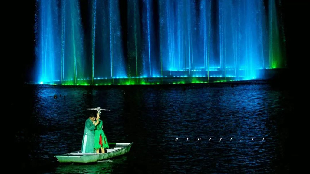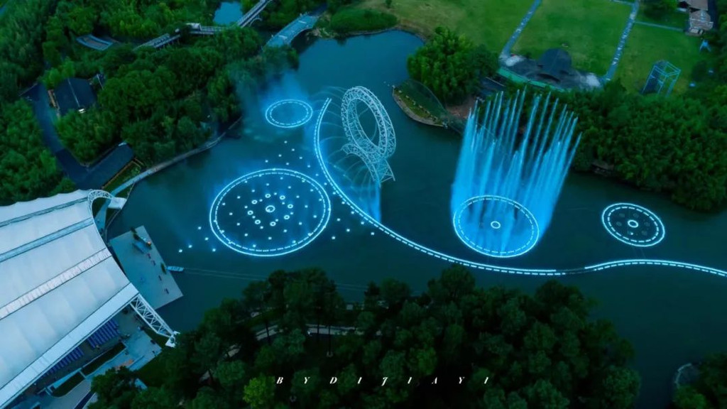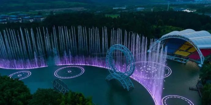 水影秀的主舞台在湖面上,属于升降式构造,湖内打造了各种音乐喷泉,有龙腾九州、众志成城、红红火火、水上芭蕾、龙行天下、芙蓉花开、云雾缭绕等,晚上灯光闪耀,如梦如幻,一下子就把人带入了情境中。