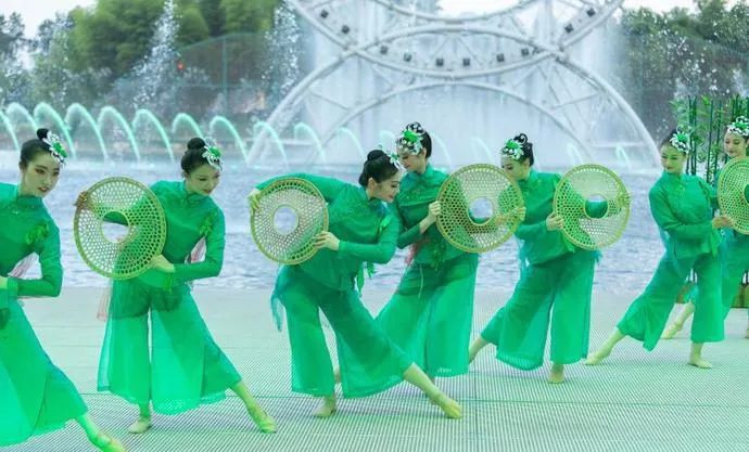 她们头顶斗笠脸上汗,腰背箩筐双脚迈。最后,整个故事在水幕光影中缓缓落幕,将安吉的白茶文化也融入其中,看完令人久久不能忘怀。