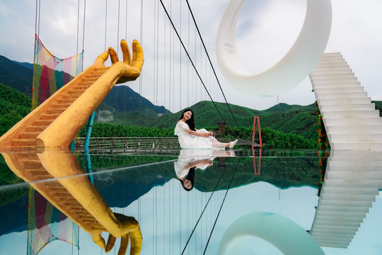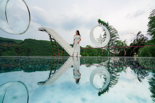 玻璃天桥的尽头还有多个网红打卡景点,天空之境360°浪漫视角,天气好的时候,蓝天白云倒影出绝美的画面,手机秒拍大片。