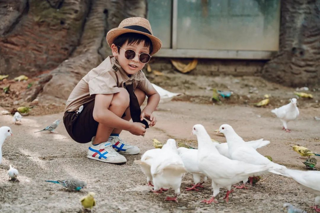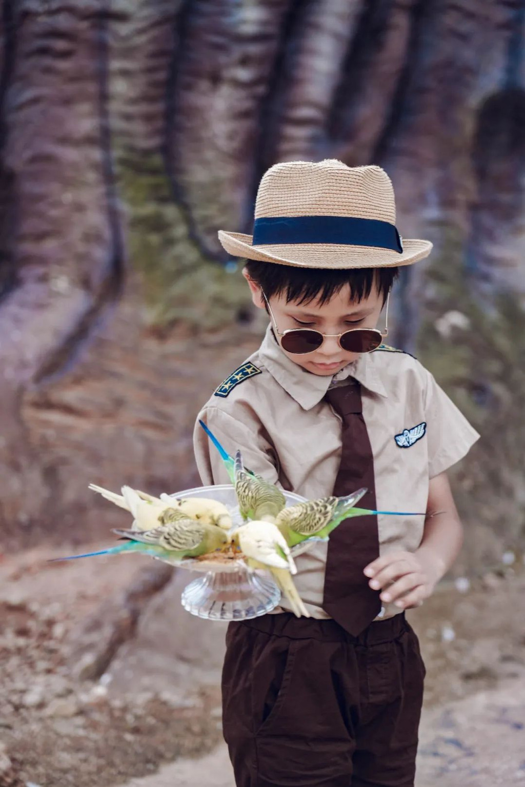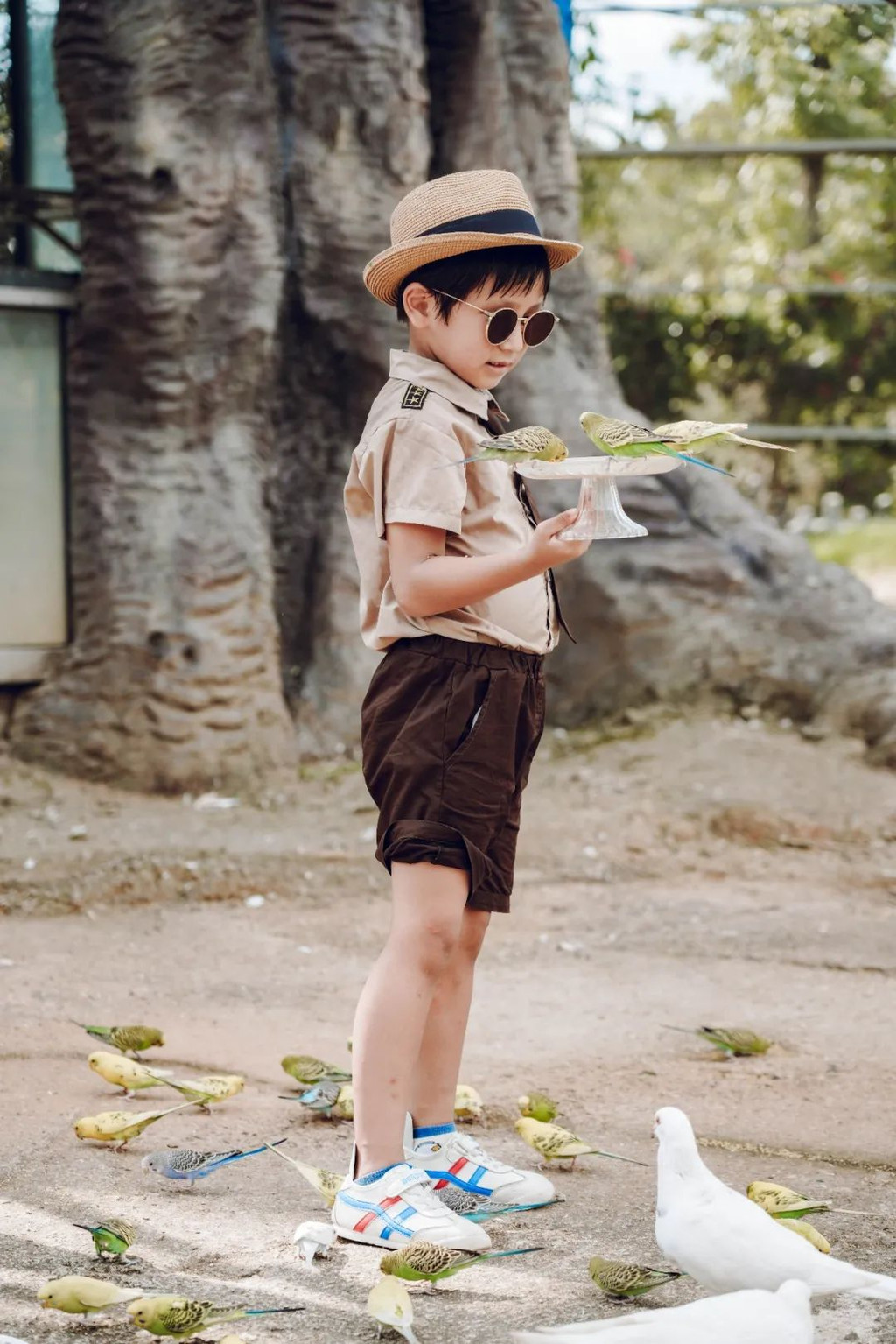当天最不一样的体验是喂鹦鹉,鹦鹉们一袭绿色的羽毛,颜色鲜艳,非常好看,元宝手捧装着谷物的盘子,一看有“美味”鹦鹉们一只只展翅飞翔争先恐后飞了过来,大概知道人类是好朋友,所以一点也不怕人。