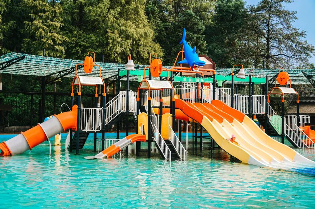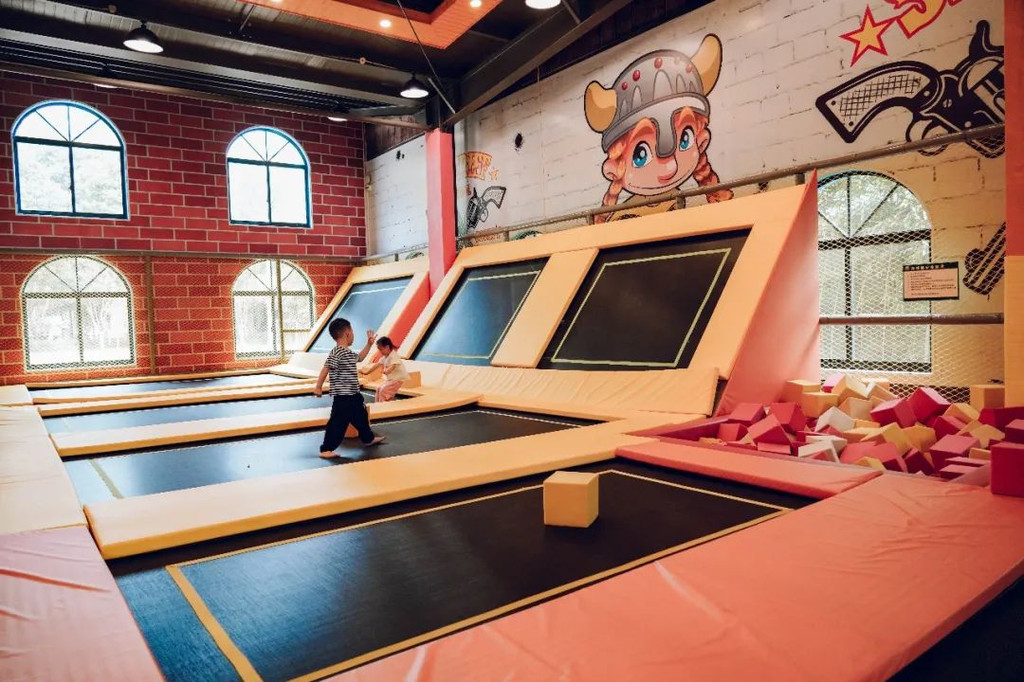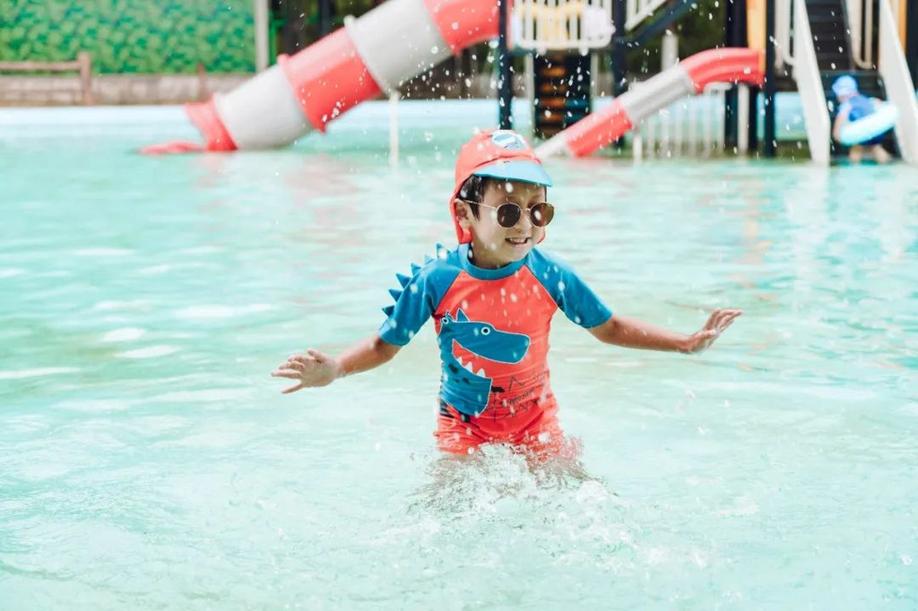 去的时候天气还比较热,元宝在室内的萌堡乐园玩了蹦床和淘气堡之后,便去了户外的水上乐园。