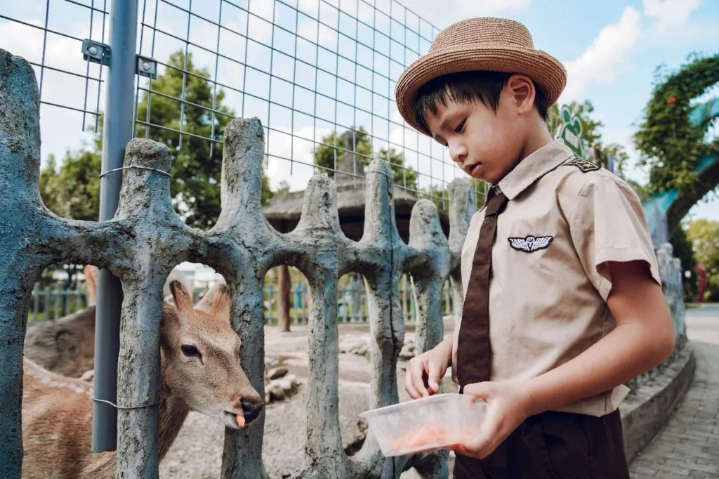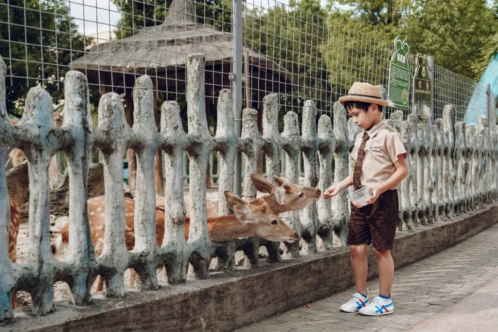 以观赏科普为主的萌宠景区,可以和可爱的大小动物们一起亲密互动,除了喂常见的山羊和羊驼之外,还能拿胡萝卜喂梅花鹿。