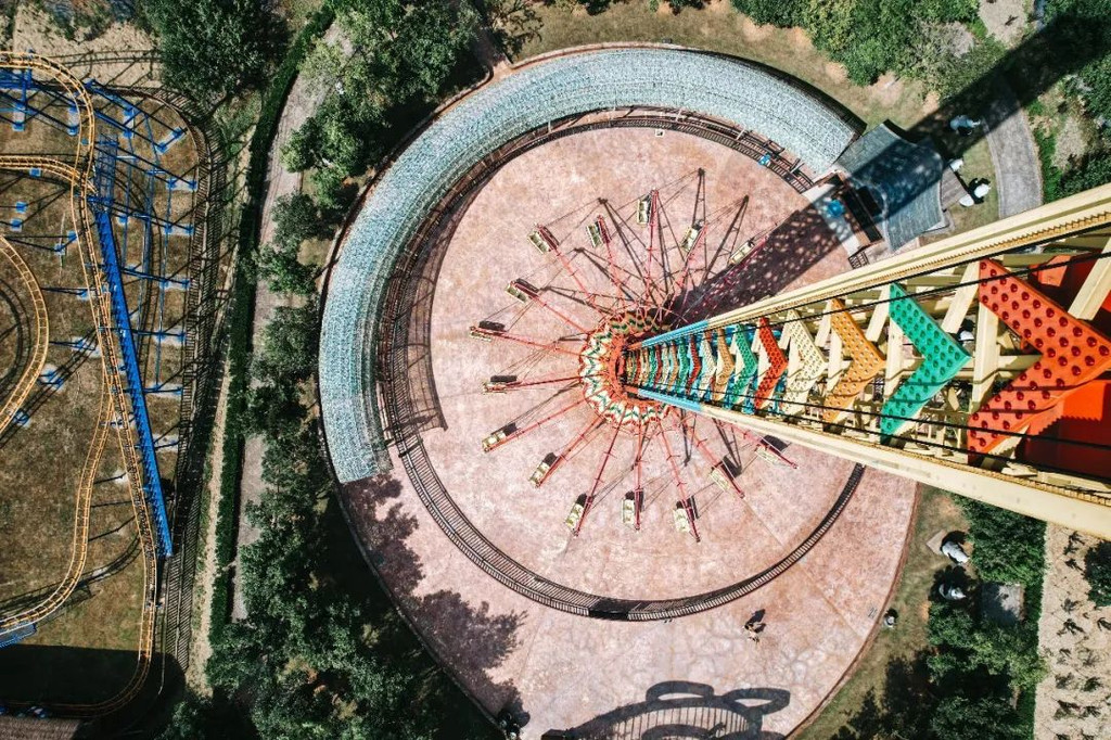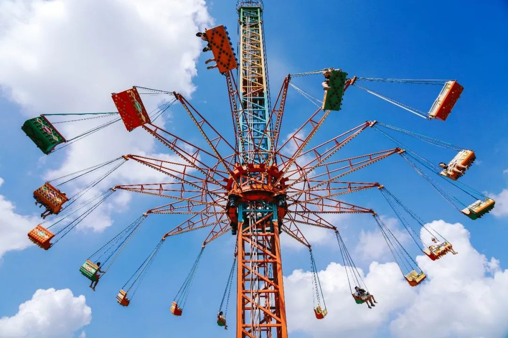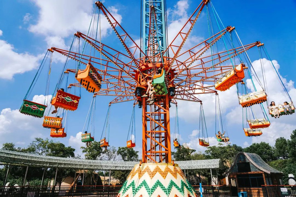 旋转至半空,乐园景色一览无余,既刺激又惬意
