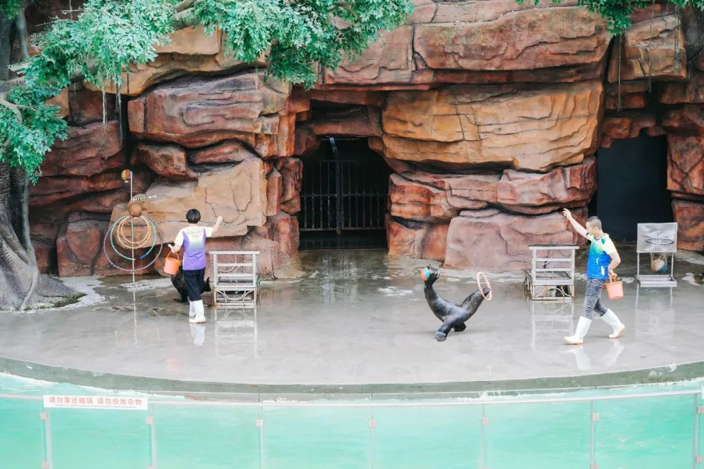 海狮表演也非常精彩,小海狮相当厉害,刷新了我对海狮的认知,胖胖呆萌看似笨拙其实非常可爱聪明,可以做包括水中跳圈在内的各种高难度动作,令人叹为观止。