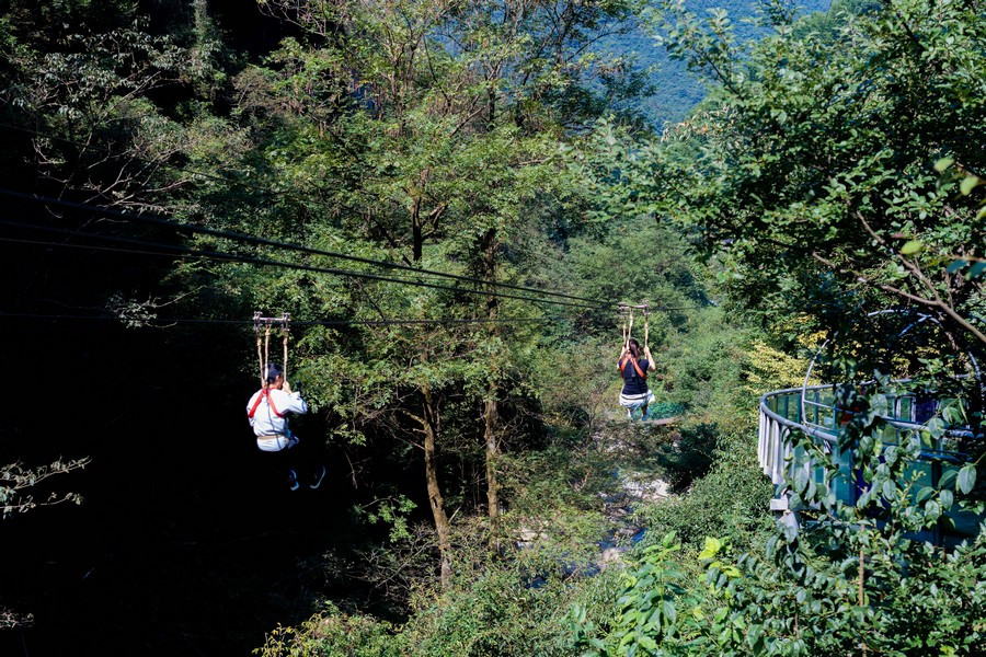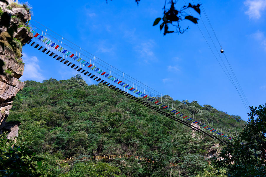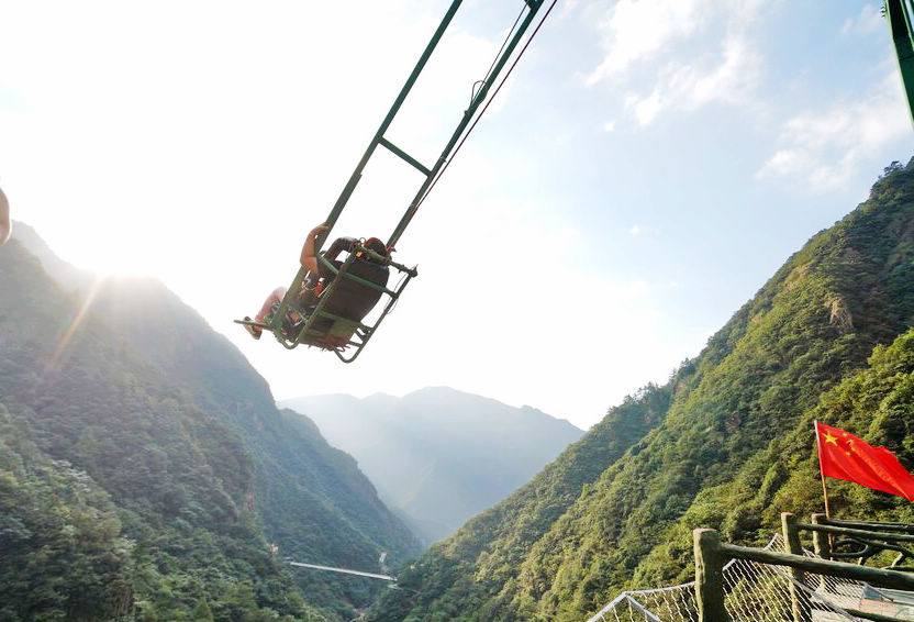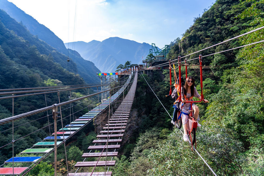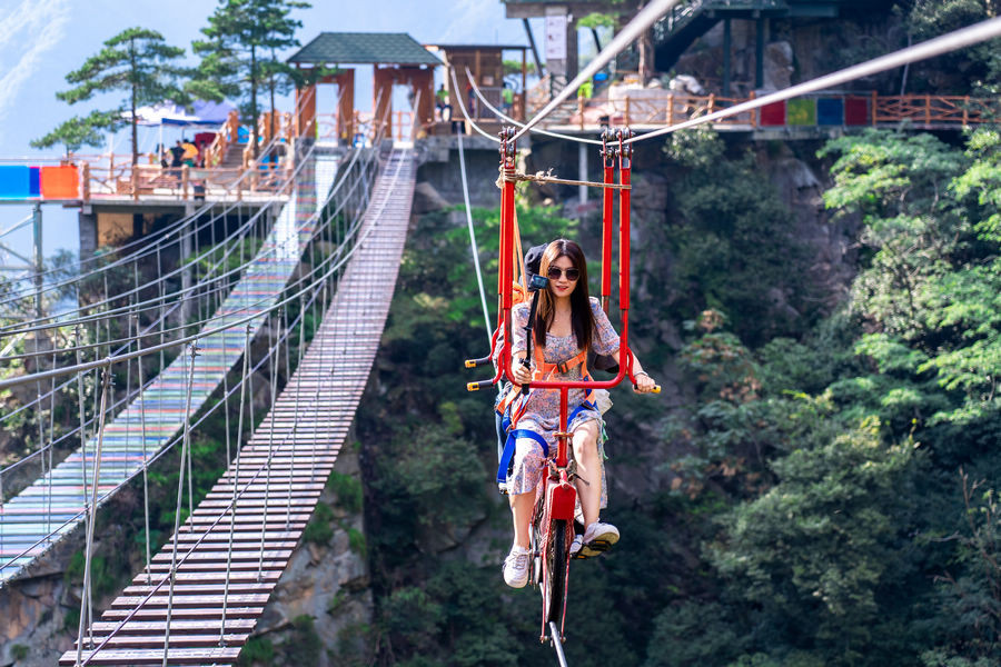 空中漂流就在玻璃吊桥的下方,全长1480米,终点距离景区出口只有300米,如果你不想走下山,那么滑下去,是最刺激好玩又快速的!