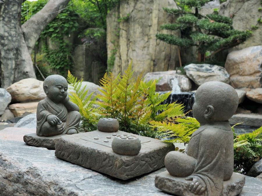 放生池,观音大士立在莲花座上,面容慈悲柔和。