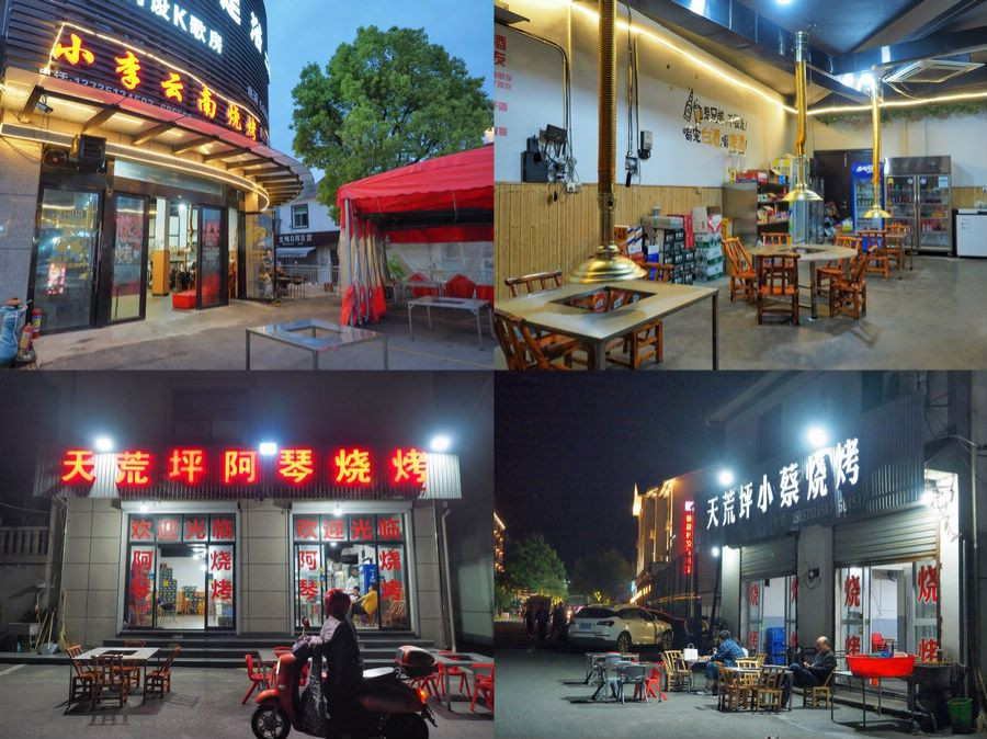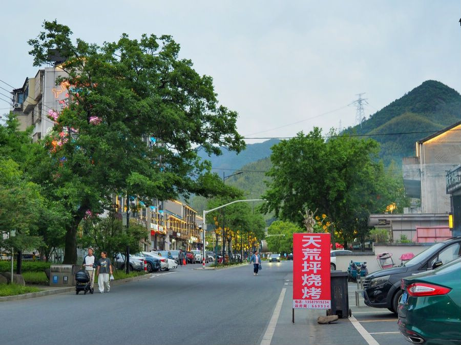 晚上吃什么呢?几个小伙伴一合计,都说这里的烧烤有名,那就去吃烧烤吧!余村的烧烤,有天荒坪和青来集两条街,众多的烧烤店集中在一处,一到夜晚,就热热闹闹,红红火火,走在街上,闻到烧烤散发出的特有的香味,就能找到好吃的在哪儿。