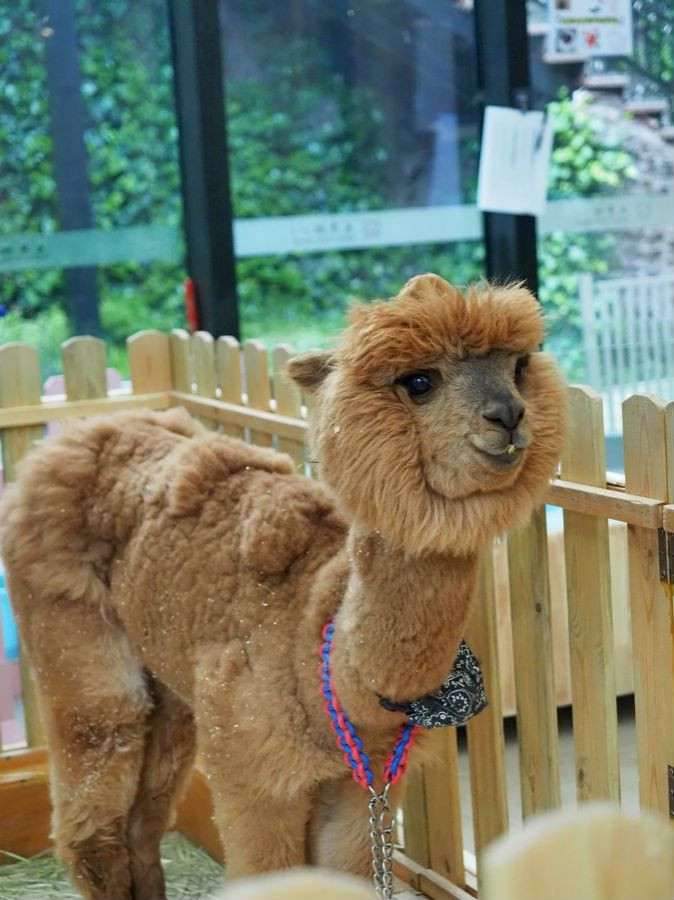 Bobo谷宠萌乐园,有很多小动物,羊驼,梅花鹿,荷兰猪,土拨鼠,雪貂,狐獴,猫咪……都被打理得干干净净,可以直接抱着零距离接触。一只叫“大炮”的恶霸犬,膘肥体壮,看到客人进门,就摇着短短的小尾巴迎上来,热情非凡。