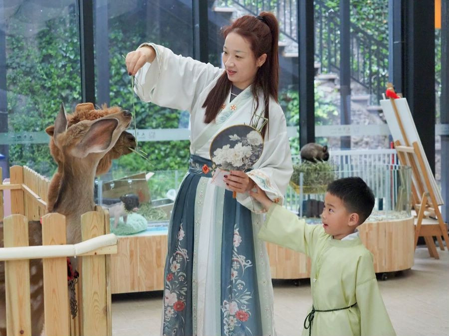 睡到自然醒,吃完早餐,酒店有汉服体验馆,宠萌乐园,跟可爱的羊驼,梅花鹿,土拨鼠,狐獴等零距离接触,再换身汉服,在绿植丰富造景优美的园子里拍拍照,一个上午就过去了。吃完午饭返程,结束两天一夜元气满满的休闲游!