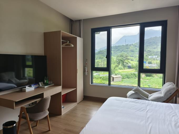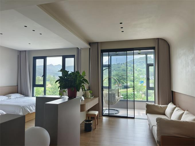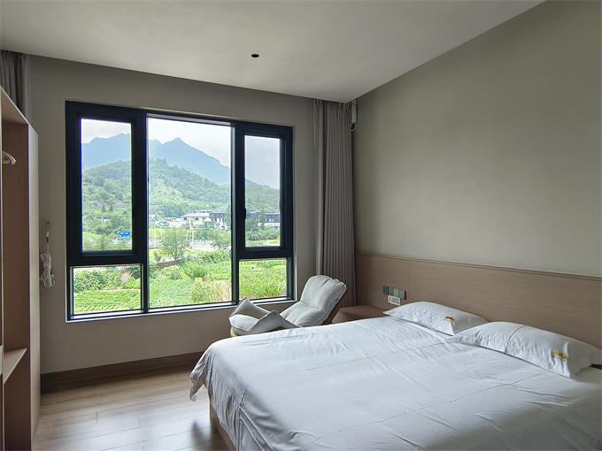 安吉望二山民宿藏于浙江安吉的群山之间,依山傍水,海拔颇高,宛如一座天然大氧吧。周边大小饭店众多方便就餐,晚上还有烧烤一条街。民宿配套设施周全,从日常所需到休闲小物,皆细致备齐。主人是一对热情和善的夫妻,待客人如亲友般亲切,总能让人感受到家的温暖。推窗即见层峦叠嶂,耸入云端的山景尽收眼底,空气里满是草木的清新,特别适合想逃离喧嚣、亲近自然的人来此放空身心。民宿旁便是潺潺小溪,溪中的鱼鳞坝更是孩子们的乐园,踩水、摸鱼、捉虾,一玩就是一下午,尽是山野间的自在与欢趣。