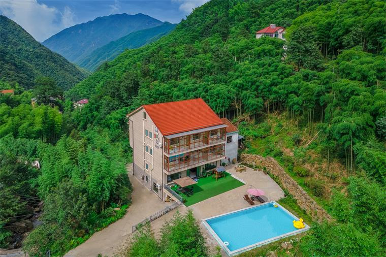 安吉惠风阁民宿地处浙江省湖州市安吉县上墅乡龙王村西坞杨家岭自然村7号,民宿临近浙北大峡谷景区,距离景区东门不过5公里,地势优越,民宿建于清脆山谷之中幽静小山村内,四周群山翠色环绕,山水相依,大片的茂盛林木连绵不绝,生态环境极为优越,每当晨起时,朦胧的雾霭缭绕山间田野,如同进入了一个如真似幻的仙境般。