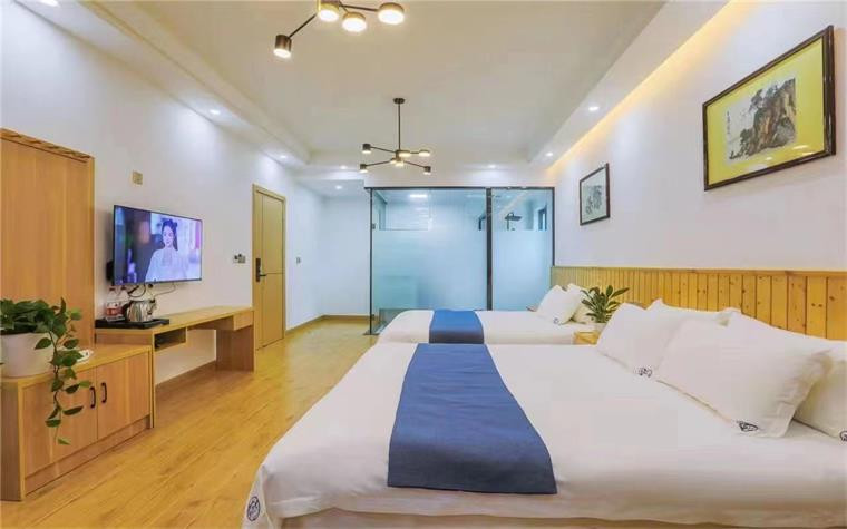 房间设施:民宿三层小楼建造简约,不失奢华,配有标间,大床房,亲子房,套房等11个房间,可容纳二三十人同时入住,全屋Wi-Fi,24小时热水,独立卫生间,有专人打扫卫生,更换用品,严格消毒干净卫生,还配有大型停车场