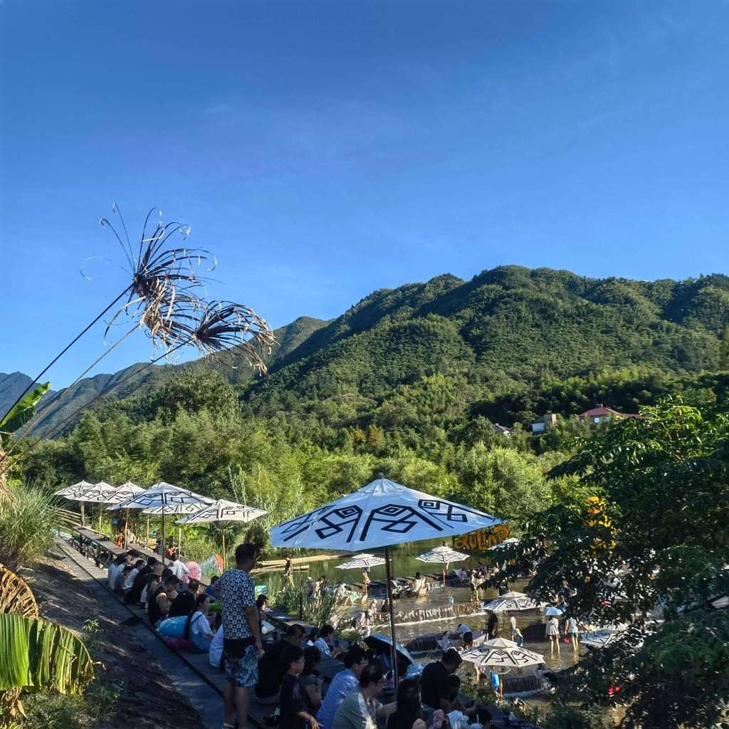 夏天的安吉才是真正有特色的安吉,旅行前必做攻略,才发现安吉有大大小小十余个漂流,或短或长,或平缓或冒险。最有名当属将军关漂流,落差比较大最是惊险。考虑到安全系数,选择了排名第二的深溪峡谷漂流,据说深溪水质特别好,被誉为在矿泉水中漂流。这一做攻略,才发现安吉是一个游乐天堂,不只是漂流和农家乐,还有许许多多的游乐园,云上草原和百草园,有动物园还有游乐园。考虑到高温天不适合游乐园模式,于是只打算玩漂流和溯溪。