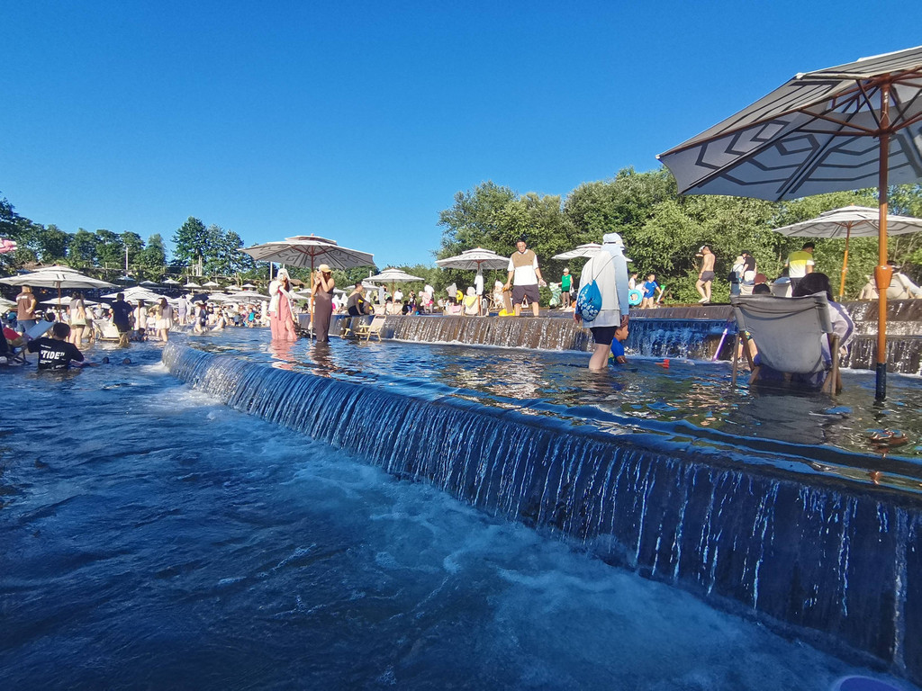 吃完饭天气很热,斜对面就是农贸市场但我们没有兴趣逛,于是就直接打车回民宿。回来找老板预定了鱼鳞坝水上乐园的门票,原价79一位,含一杯饮料,在民宿订只要55元。