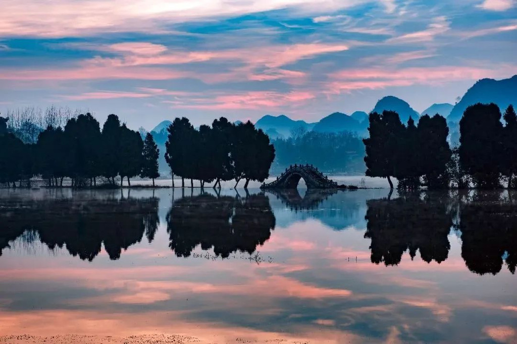 行走在村寨间,掩映在绿树丛中的布依民居和苍劲挺拔的千年重阳古树,构成一幅古树小桥流水人家的诗意画卷。